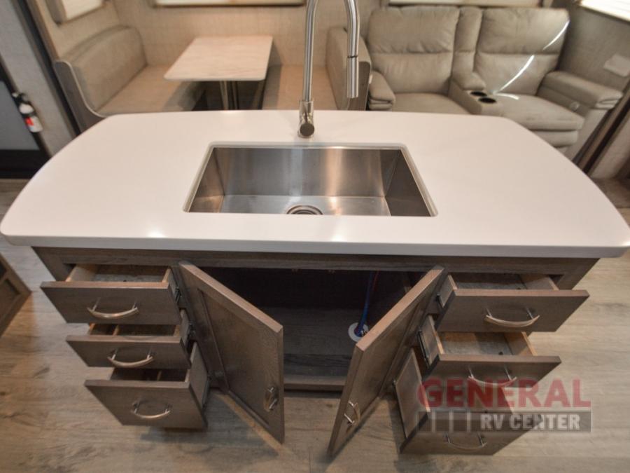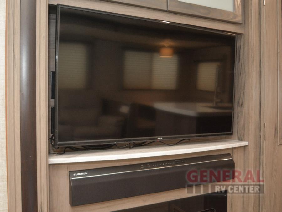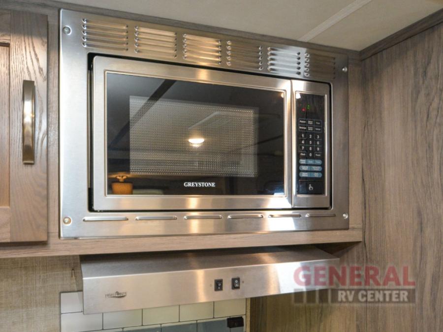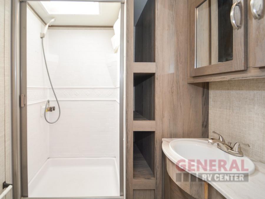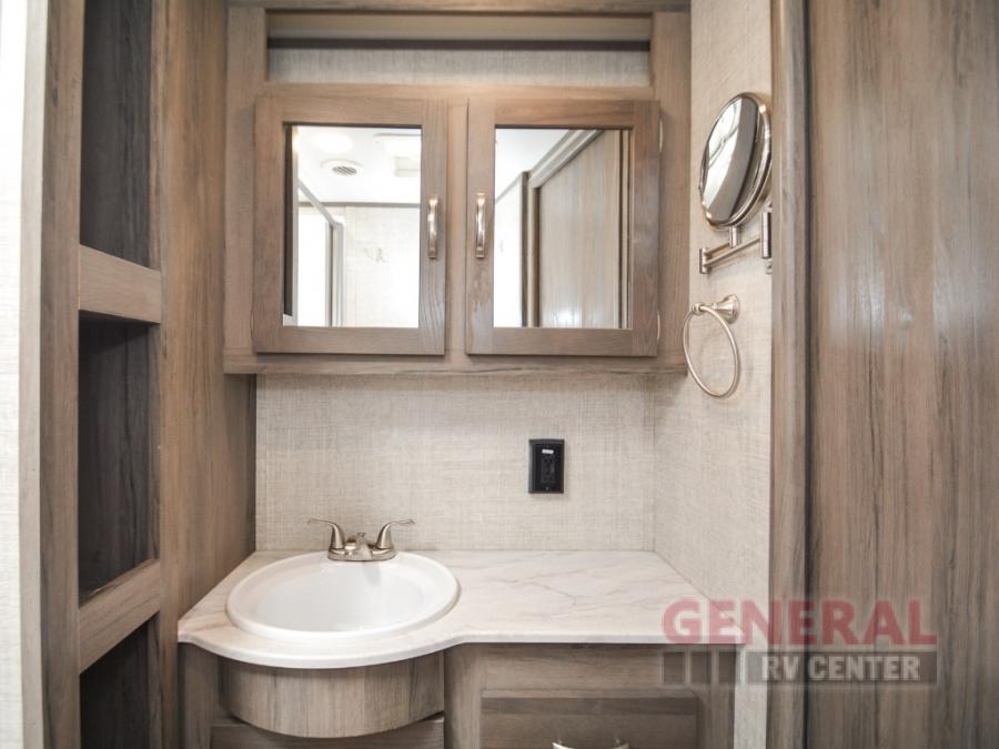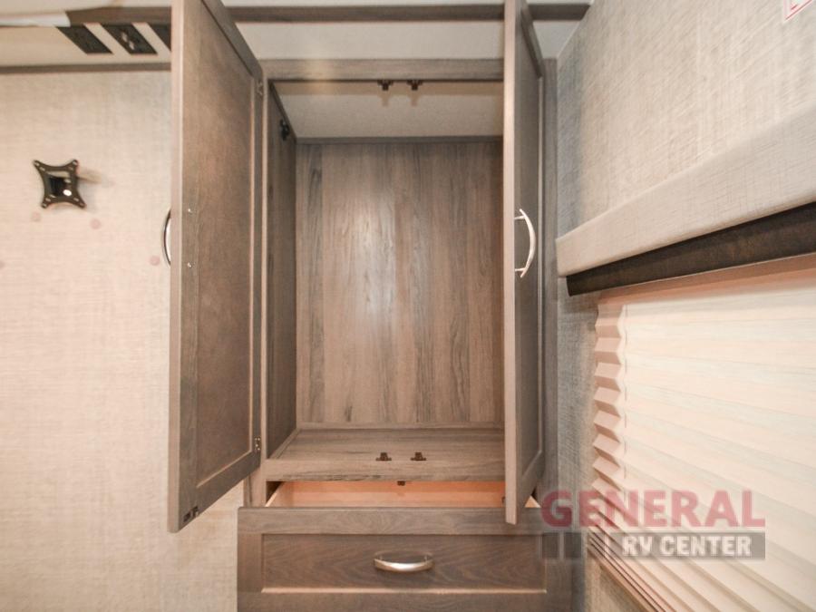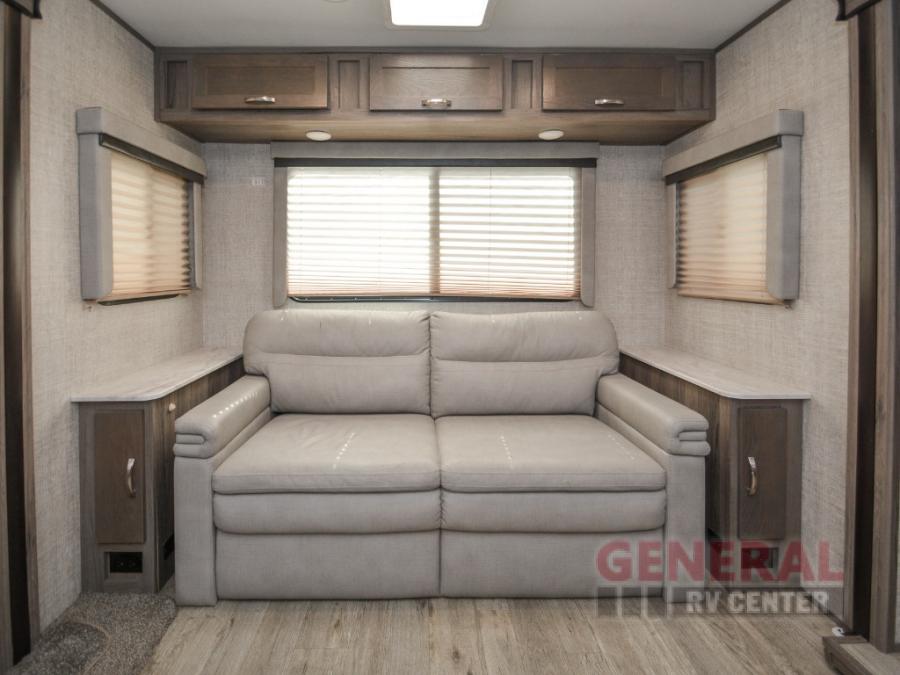 Each Gulf Stream Envision travel trailer is built on a welded aluminum frame with laminated fiberglass walls for lightweight towing, and they also include Azdel synthetic substrate in the side walls. The standard Envision Power Package and the Worry-Free Camping Package include features that will make camping easier than ever, such as a power tongue jack, an exterior docking station, slam-latch baggage doors, plus so much more. You will love the look of the solid surface kitchen countertops, along with the designer window treatments and stainless steel appliances. The Envision travel trailers allow you to enjoy "luxury in the wild", so what are you waiting for?