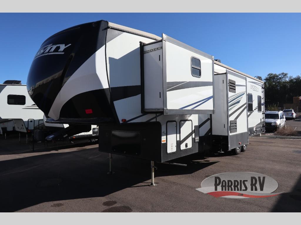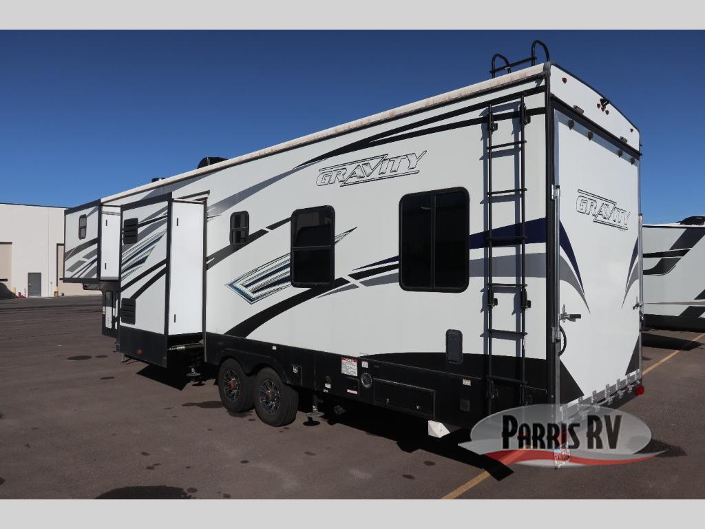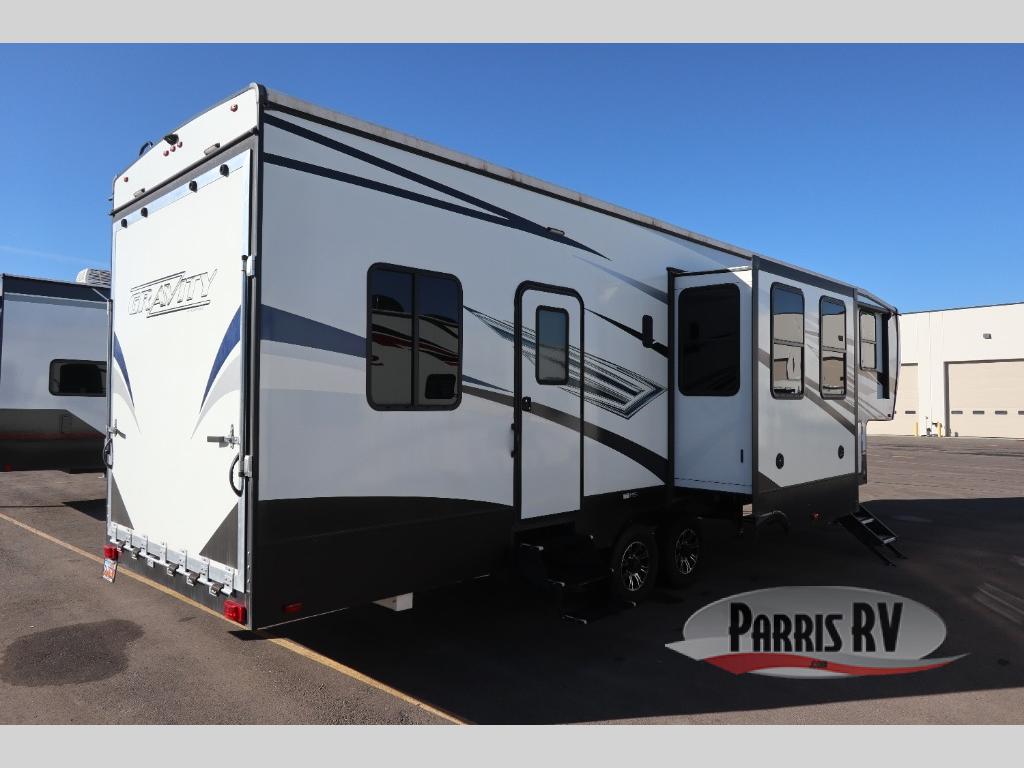 You will find indoor luxuries with an outdoor lifestyle in any one of these Heartland Gravity toy haulers! The 30 gallon lockable fueling station makes it easy to fuel up your favorite off-road toys and you can even unlock it with your units keys. The ramp door patio kit will create the perfect outdoor hangout spot, and the MORryde solid step helps you to safely enter and exit. You can go off grid thanks to the 20 watt solar panel with inverter prep and know that your toys will arrive in the same spot you left them with the integrated frame welded tie downs. The Dexter axles with G range tires ensures you will have a safe trip too. You can even keep your electronics fully charged with the wireless charging ports and keep yourself fully charged sleeping on the king bed!
