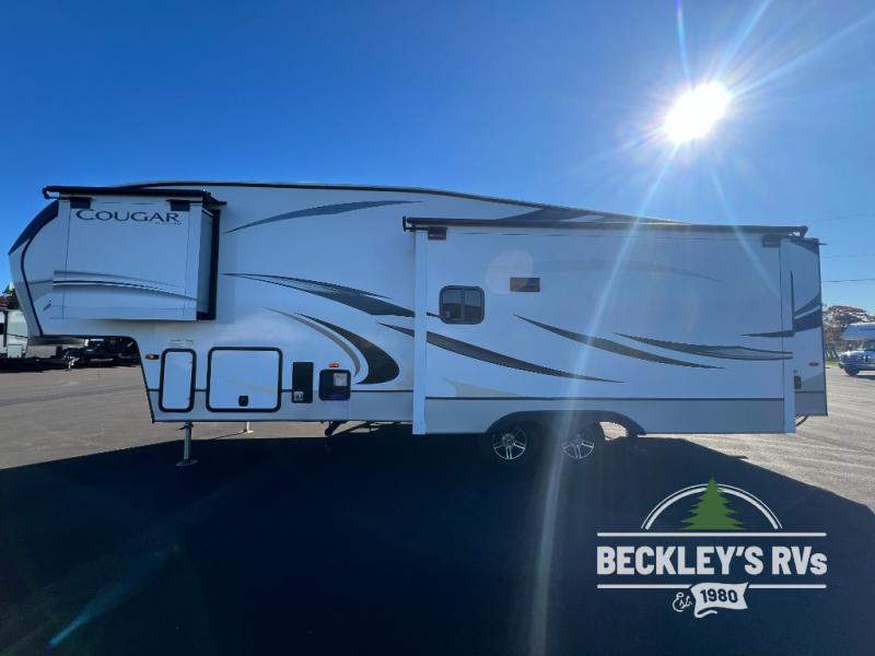 The Keystone Cougar Half-Ton fifth wheel and travel trailers are known as one of America's favorites for a reason! Some of those reasons are the exclusive features that come from Keystone, like the preparations for 4G and Wi-Fi, the in-floor heating ducts, and the Hyper Deck flooring. The Cougar Half-Ton has a Climate Guard protection package to keep you safe during inclement weather, and you'll also find an iN-Command Generation 3 with global connect. Use the 21" Furrion range with Piezo ignition to create all of those familiar meals from home, and add on the optional Off The Grid Solar Camping Package that comes with a roof-mounted solar panel, 30 AMP solar charging system, 2,000W pure sine inverter, and four inverted outlets.