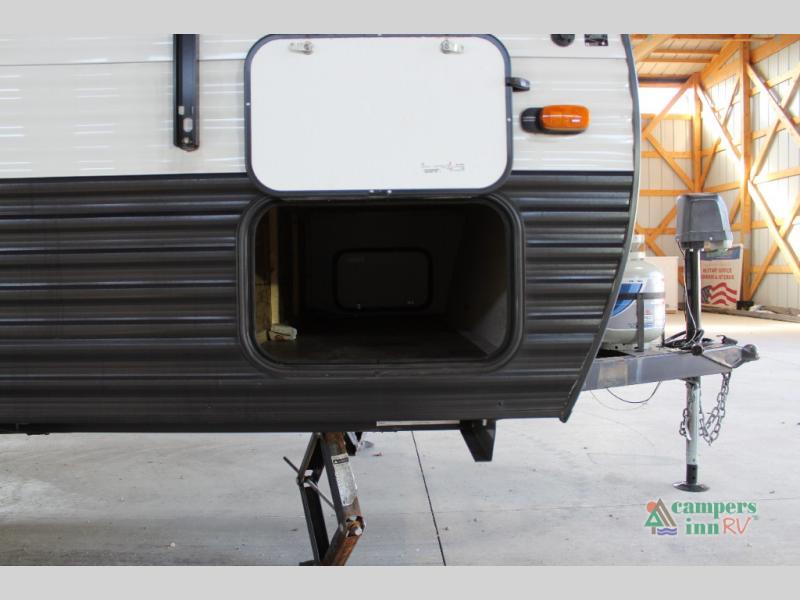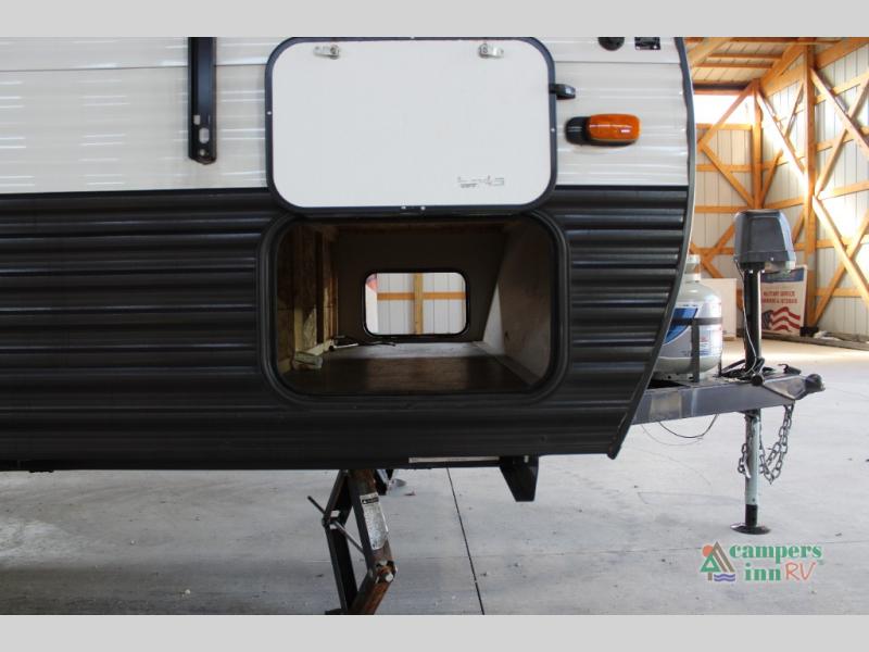 Abundant storage throughout is what makes this Hideout Single Axle travel trailer easy to keep organized! You will love the exterior pass-through compartment up front for all of your outdoor camping gear and yard games. With a power awning, you can enjoy the evening playing corn hole and roasting marshmallows over a campfire. When inside, there is plenty of space thanks to the large slide which features a booth dinette and jackknife sofa, and both seating spaces offer storage drawers below.