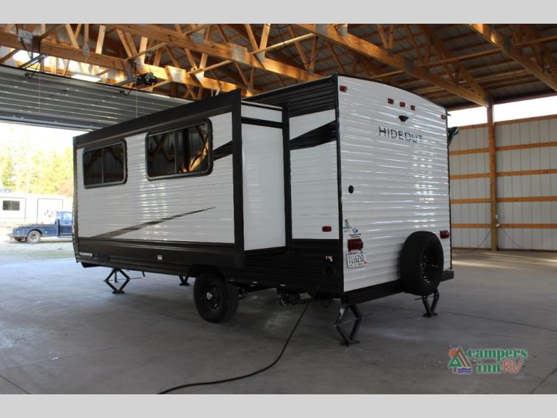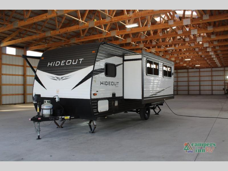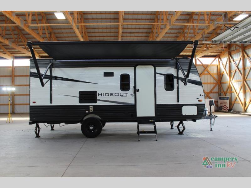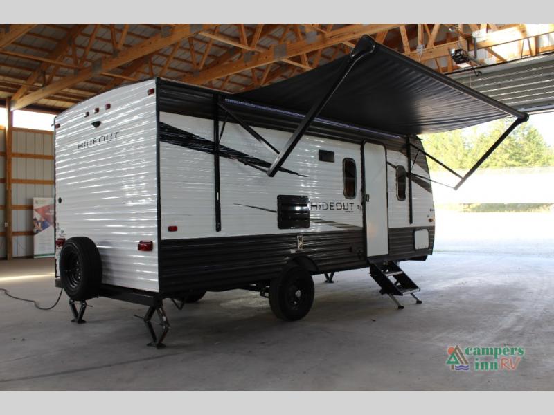 If you would like to make your adventures the easiest they can be, then choose the Keystone Hideout Single Axle travel trailer! These models come with some features that are exclusive to Keystone, like the color-coded unified wiring, the preparations for 4G LTE and Wi-Fi, the Tuf-Lok thermoplastic duct joiners, the in-floor heating ducts, and the Tru-Fit slide construction. The Hideout Single Axle has an aluminum exterior, spare tire kit, LCI SolidStep entry, preparations for a Furrion back-up and side camera, preparations for solar power, and a friction-hinge entry door. The exterior speakers will be great to have for outdoor parties, and the power awning will provide you with some protection as you sit outside and enjoy the fresh air.