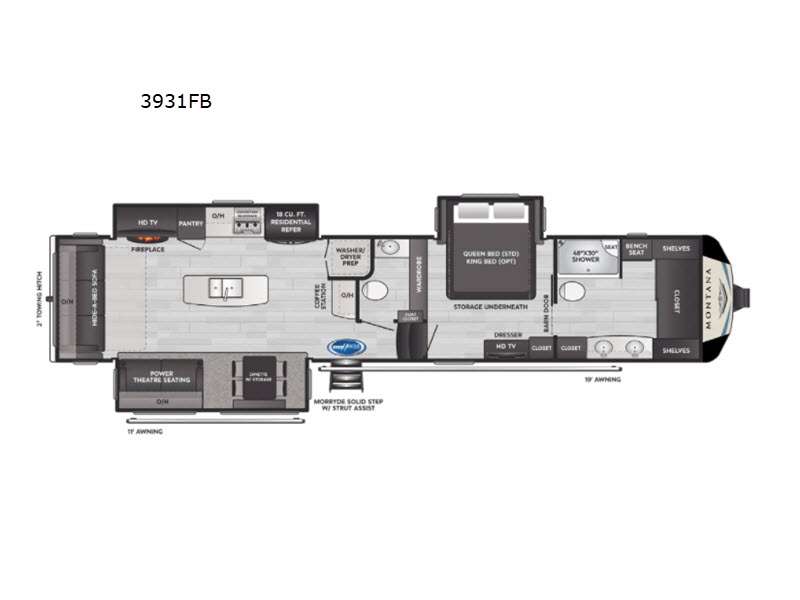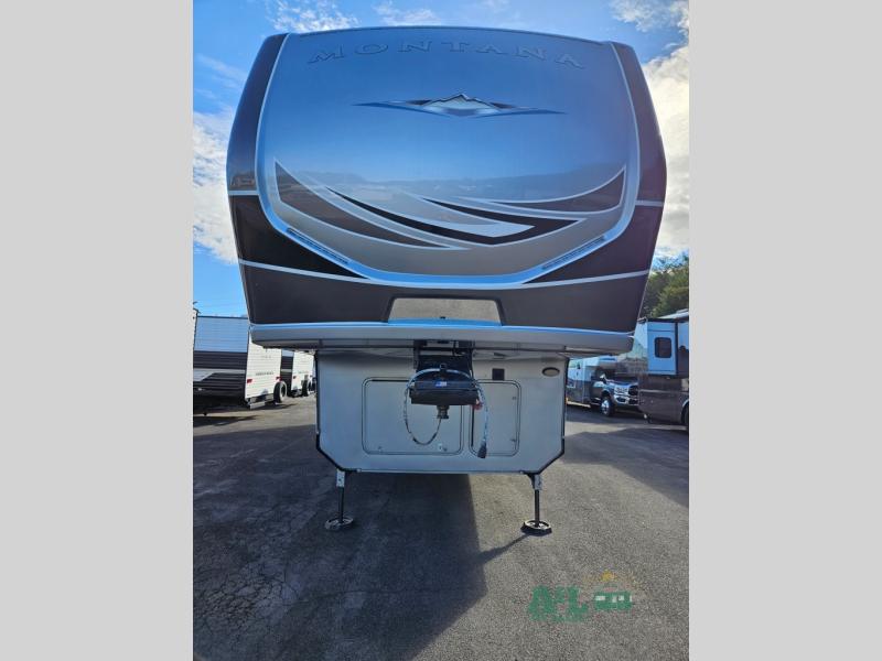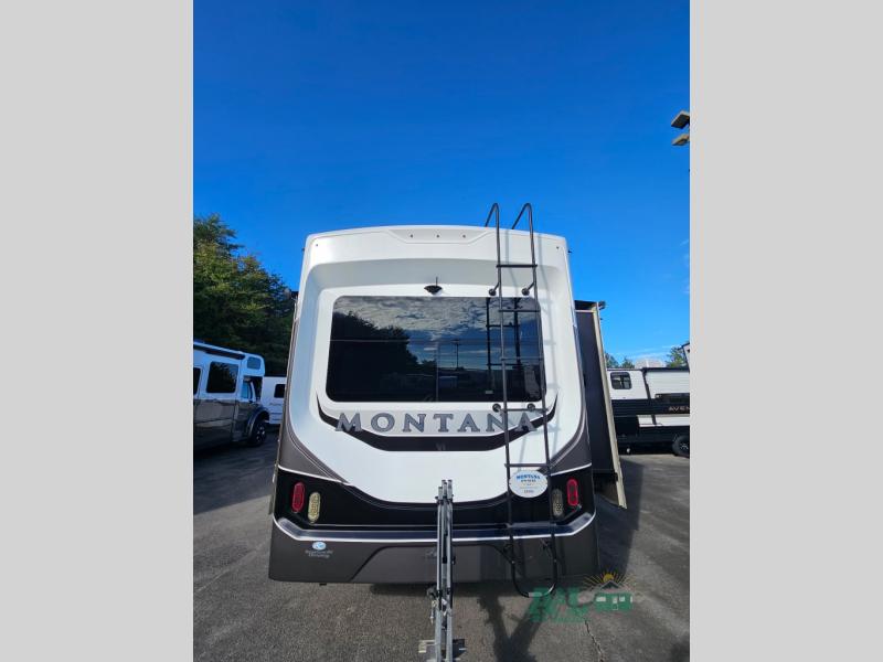 If you are an experienced RVer who is ready to gain more freedom on the road, then you need to check out the Keystone Montana fifth wheel! With exceptional craftsmanship, durable construction, dependable luxury, and cutting-edge technology, the Montana is truly a dream. The Montana has some easy set-up features, like an electric patio awning with LED lights, Hitch Vision with LED lighting, and MORryde Step Above entry steps with strut assist for an easy entrance. The Four Seasons Living Package allows you to camp year around with features such as, a heated and enclosed underbelly, a reflective foil insulated front cap, dual attic vents, and more! The Montana has you covered with convenient camping features, like the central vacuum, the stackable washer and dryer prep, and the Whisper Quiet Cool A/C's for an evenly and quietly cooled RV. Each model includes solid hardwood cabinet stiles, a 5K BTU decorative fireplace heater, a high-rise pull down faucet in the kitchen, plus many more interior comforts to make you feel right at home.