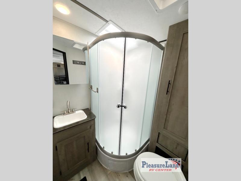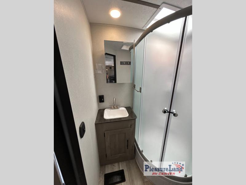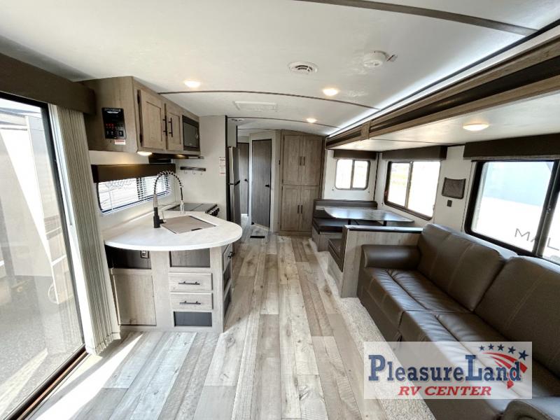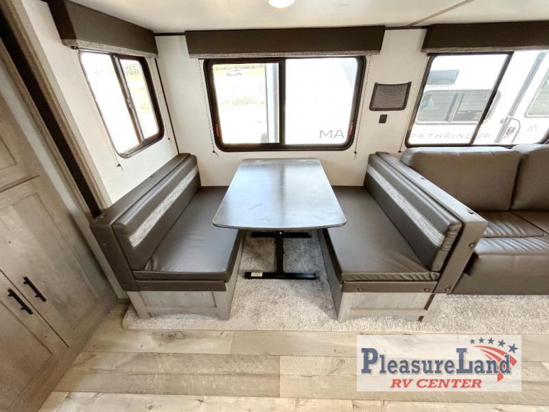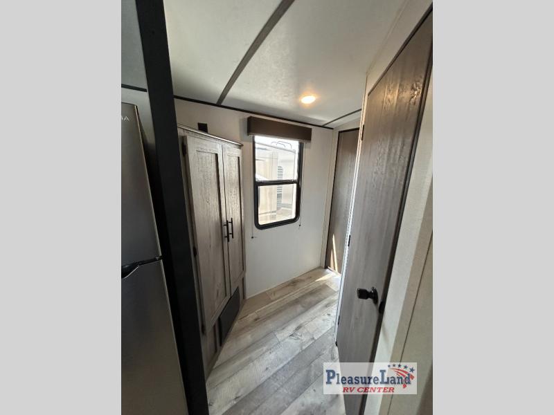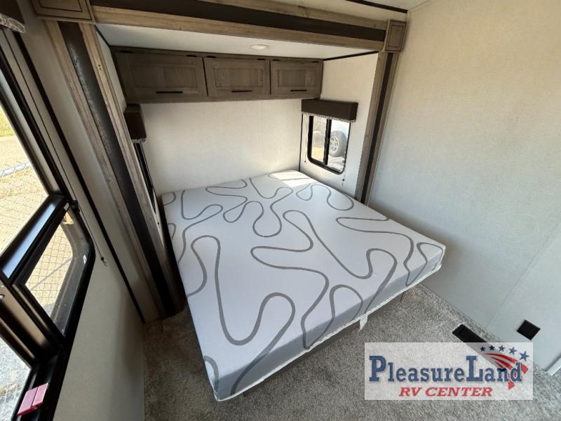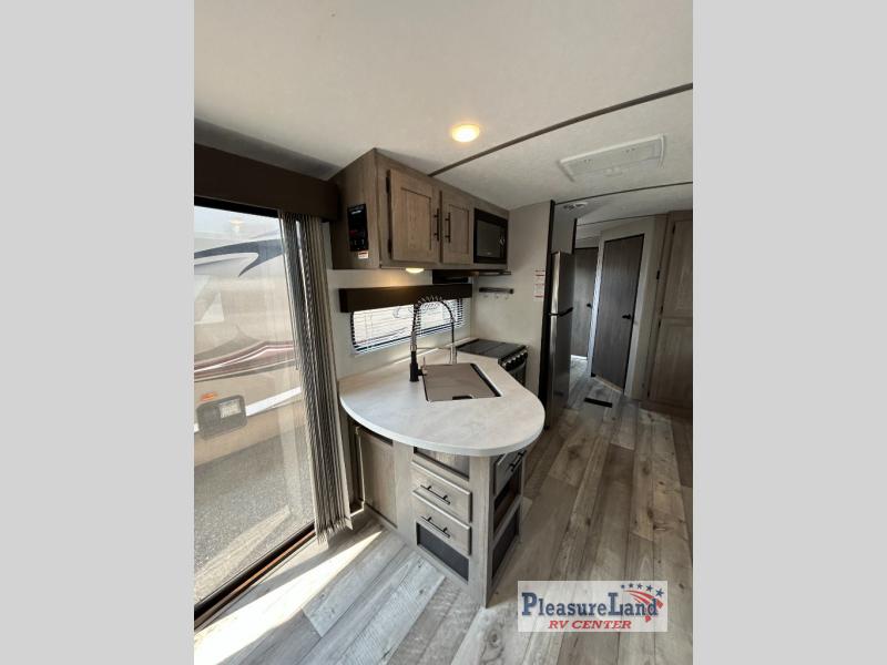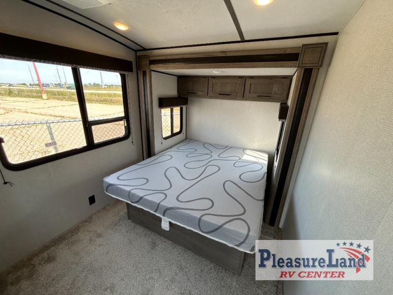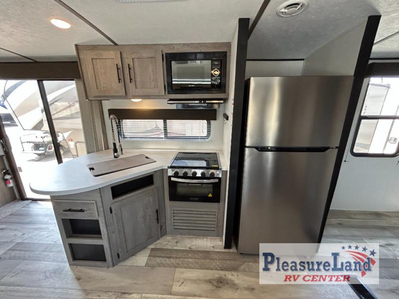This spacious Keystone Springdale destination trailer allows you and your family or friends to escape to your favorite place be it the lake or the ranch. The front living area offers an L-shaped mega tri-fold sofa, an entertainment center, an LED TV and a fireplace making this area both cozy and comfortable. This is the perfect space to hang out and enjoy a conversation or a movie with family and friends. You will find more seating space in the slide out on the booth dinette and tri-fold sofa, both provide extra sleeping space as well. The kitchen offers all that you need to prepare and cook for your hungry crew for a weekend or longer. There is a large kitchen sink making cleaning up easy, a three-burner range for cooking your meals, and two pantries for dry good storage. And at night, you will have your own queen bed slide in the rear bedroom which offers storage and the second exterior entry for convenience.
