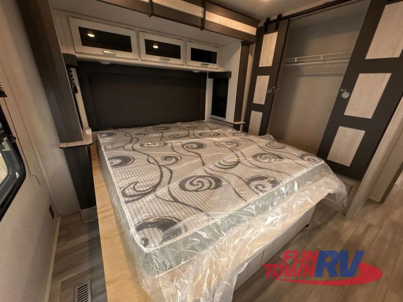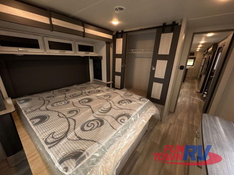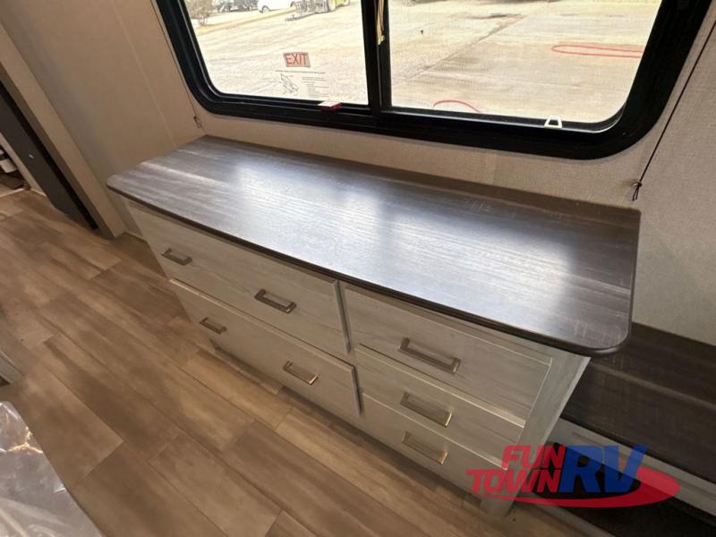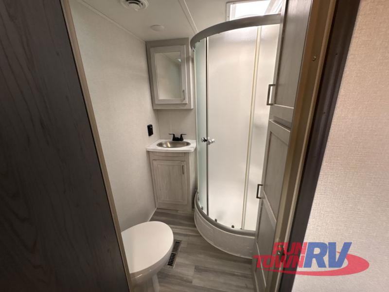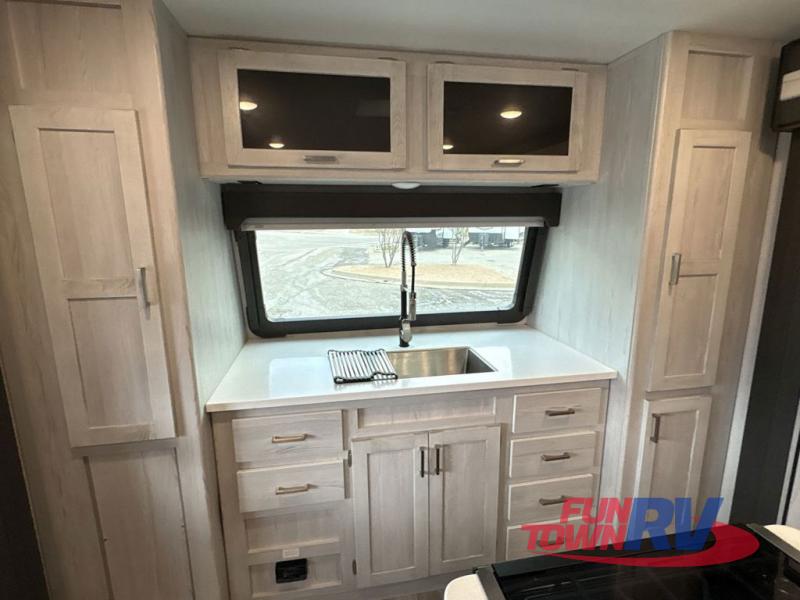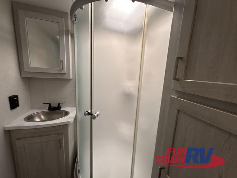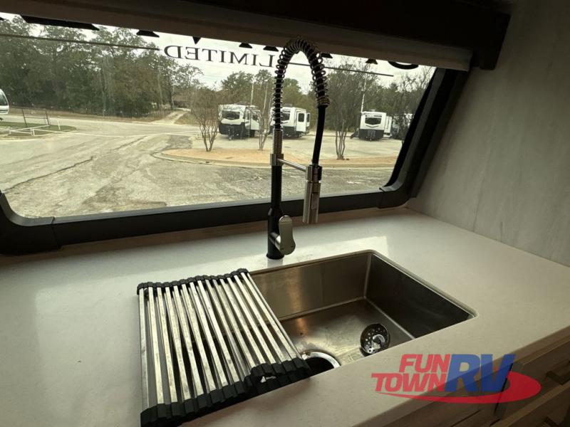 Set out on a redefined adventure with any one of the industry-best 100" wide-body constructed Sprinter Limited travel trailers by Keystone RV! The Tru-Fit slide construction offers a more durable slide room design that minimizes functional motor and structural stress, as well as resists leaking. The in-floor heating ducts allow for more airflow to distribute heat evenly, and the Tuf-Lok A/C duct joiners securely join duct work and A/C units to drastically reduce chilled-air leaks and boost cooling efficiency. Inside you'll find a deep single-basin stainless steel industrial sink and LG solid surface countertops in the kitchen, plus an upgraded bedspread and LED reading lights over the bed for your comfort. These fifth wheels also include a convenient eight-function remote for awnings, lights, and stabilizers/leveling, plus a 15K BTU Coleman Mach Quiet Cool A/C and a 35K BTU furnace to keep you comfortable year around!