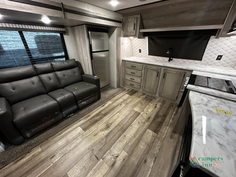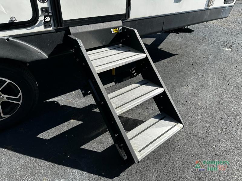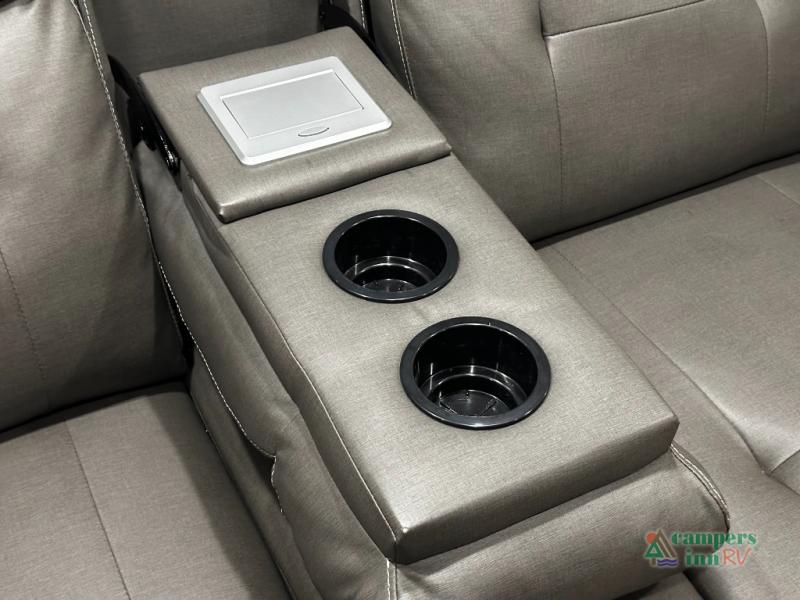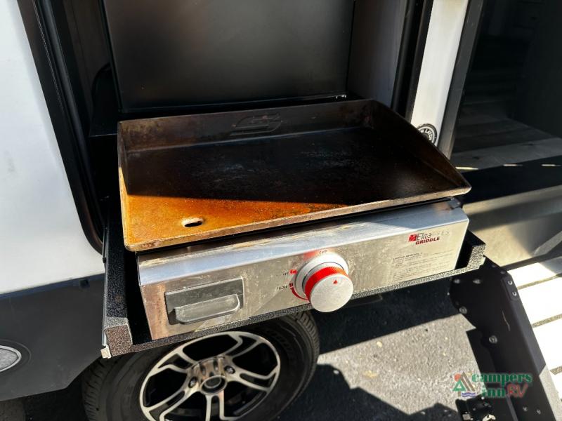 This couple's Connect SE travel trailer offers a rear private bedroom with a walk-around queen bed and dual wardrobes, a full bathroom with a radius shower which saves on floor space, and a front kitchen with lots of counter space. You can relax on or work from the theater seats including USB ports to keep your cellphone charged, cupholders for your beverages, and a table to utilize as you wish. Outside, you can enjoy the weather protected from the elements under the 18' power awning that includes an LED light strip so that you can relax into the evening. The mini outside kitchen with griddle allows you to make meals while outdoors, and the pass-through storage in the rear gives you space for the larger camping gear.