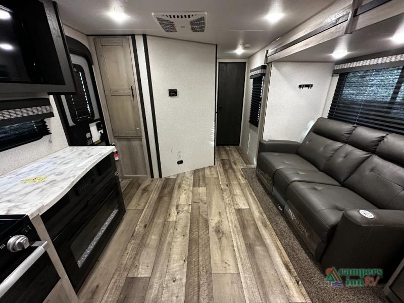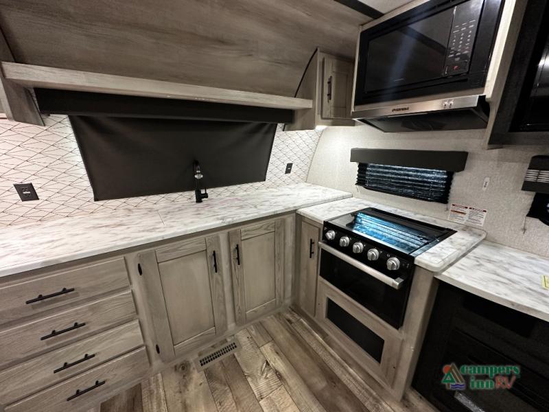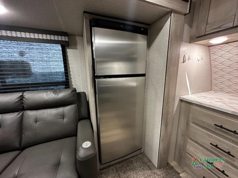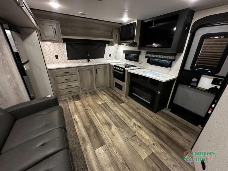 The NXG frame foundation for each Connect SE travel trailer by KZ is just as impressive as its interior since it is constructed with high-strength low-alloy prime steel, uses the CNC controlled rail fabrications and camber, plus eliminates frame failures, construction issues, and corrosion! The exterior also includes a one-piece seamless, walk-on roof that has Tufflex roofing material, UVA and UVB-resistant gelcoat Lamilux® exterior, 3/8" fully walk-on roof decking and a heated, insulated and enclosed underbelly giving you freedom to travel during any climate. Some of the interior features that are sure to impress include Rich Woodbridge maple cabinetry, hand-crafted mortise and tenon cabinet doors, accent trim on corners and entry door, a matte black residential kitchen faucet, and much more! Choose a lightweight, low-priced Connect SE today!