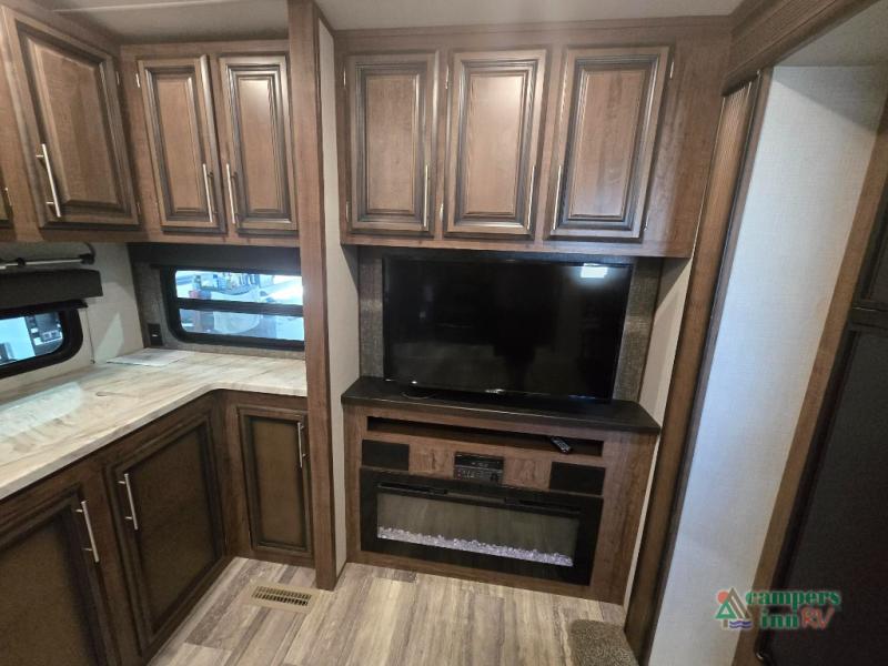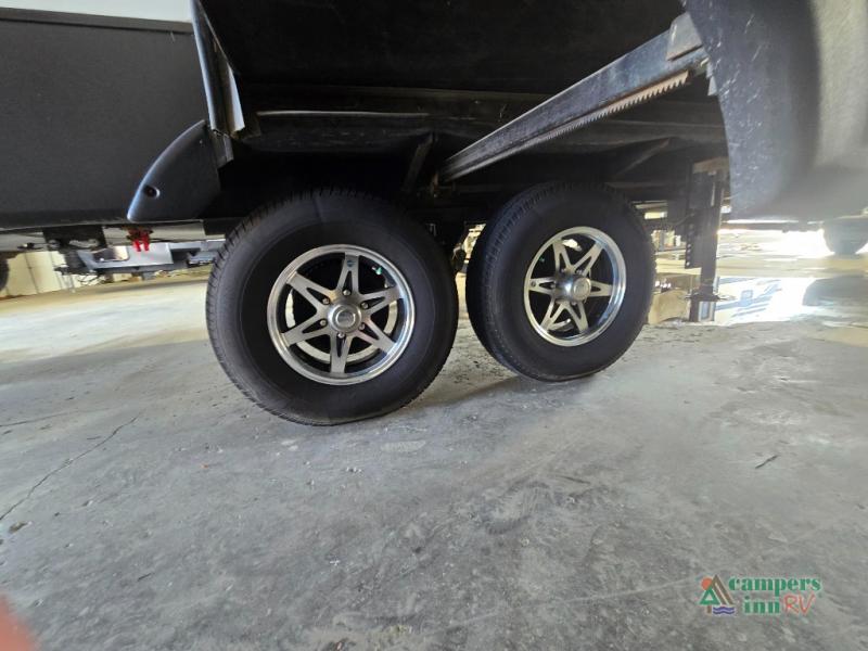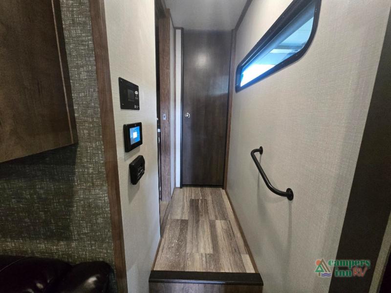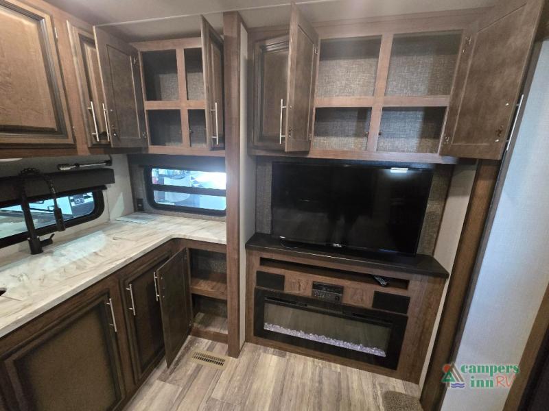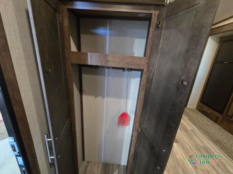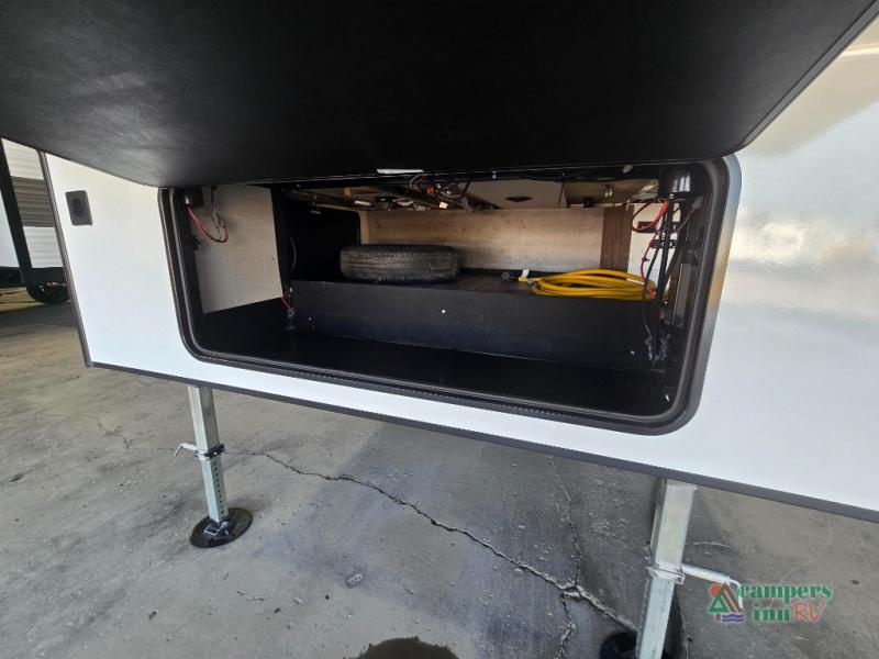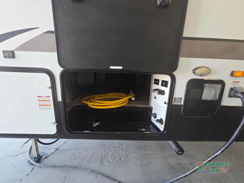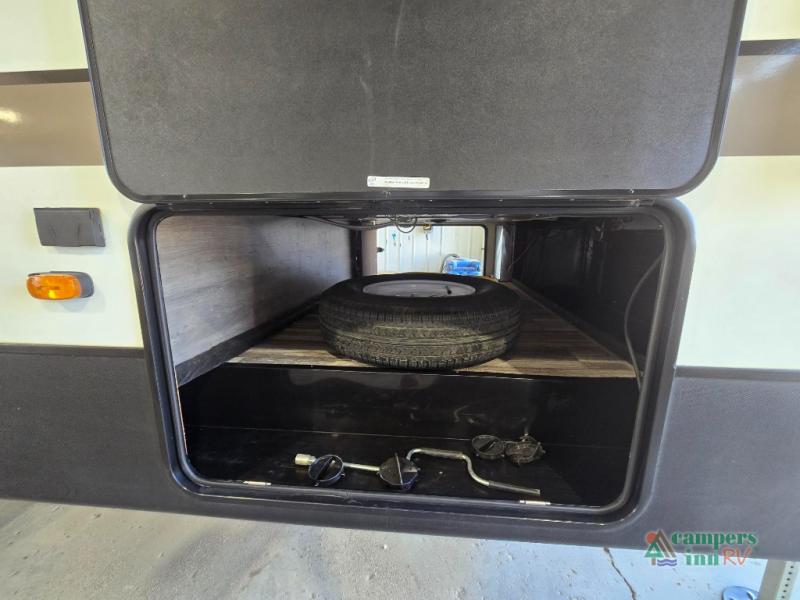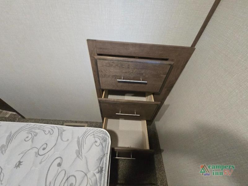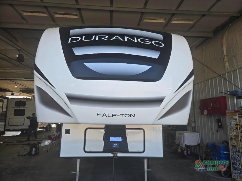 You will be absolutely impressed by the KZ Durango Half-Ton fifth wheel! With sumptuous décor and unparalleled quality, there isn't much else that compares. The Durango Half-Ton fifth wheel has a Lamilux gel-coat fiberglass, a steel powder-coated frame, a one-piece, seamless, walk-on Tufflex roof, and a reinforced heavy-duty fiberglass front cap. You can travel confidently with the Dexter axles that have self-adjusting brakes, the Equa-Flex rubberized suspension, and the 16" nitro-filled tires, and the exterior speakers and electric awning with LED lights will make for a great party space once you have made it to your destination. The fully finished, heated and sealed basement storage compartment will safely transport your gear to the campsite, and you can use the leash latch with bonus beverage holder to keep your puppy secured while playing outside.