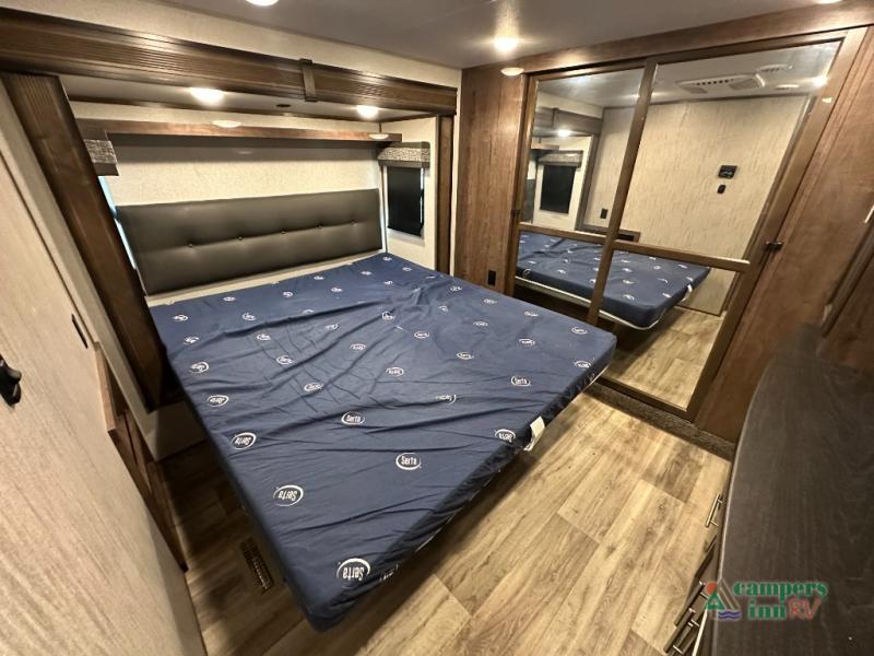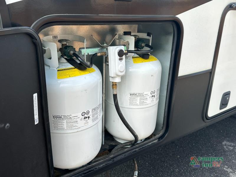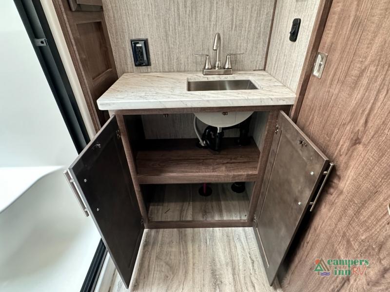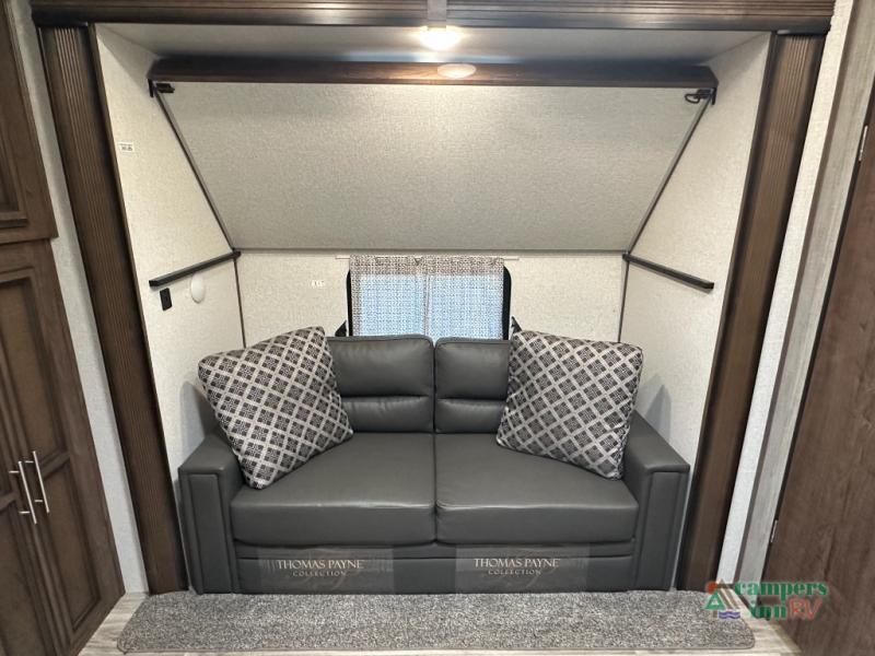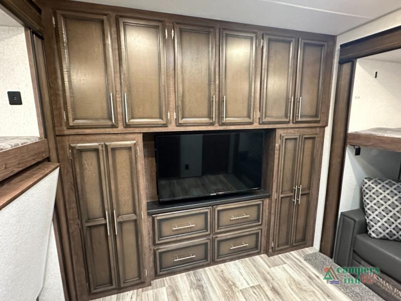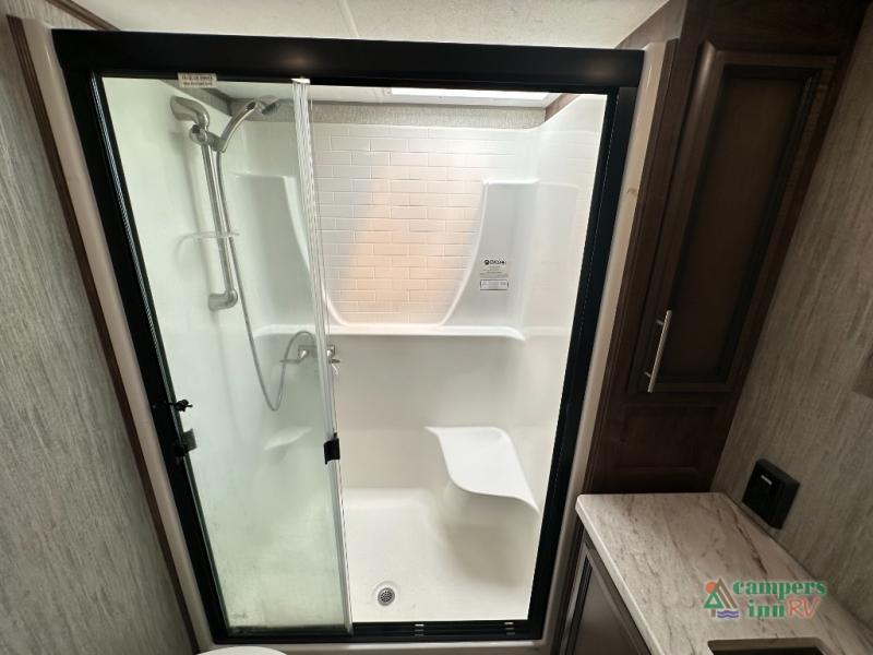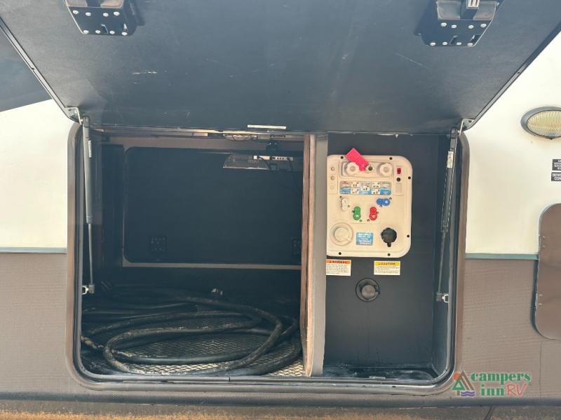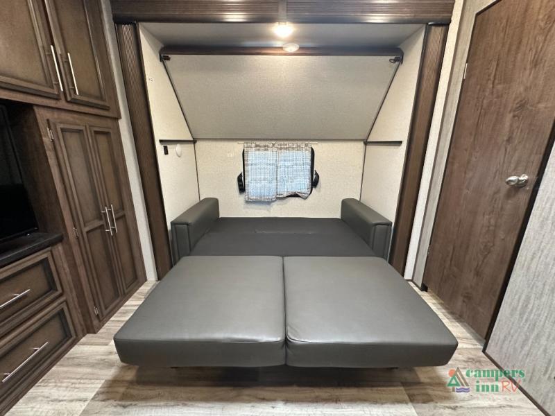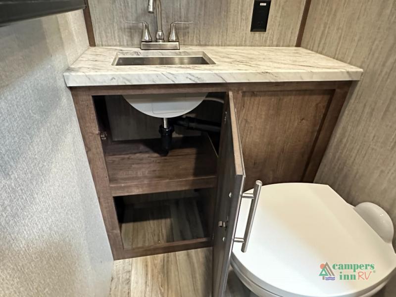 Convenience Pack: Auto leveling, 50A service with 2nd AC prep, power awning, backup camera prep, solar prep, tankless water heater, lithium-ready