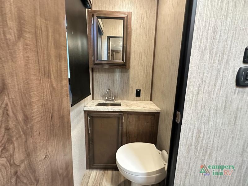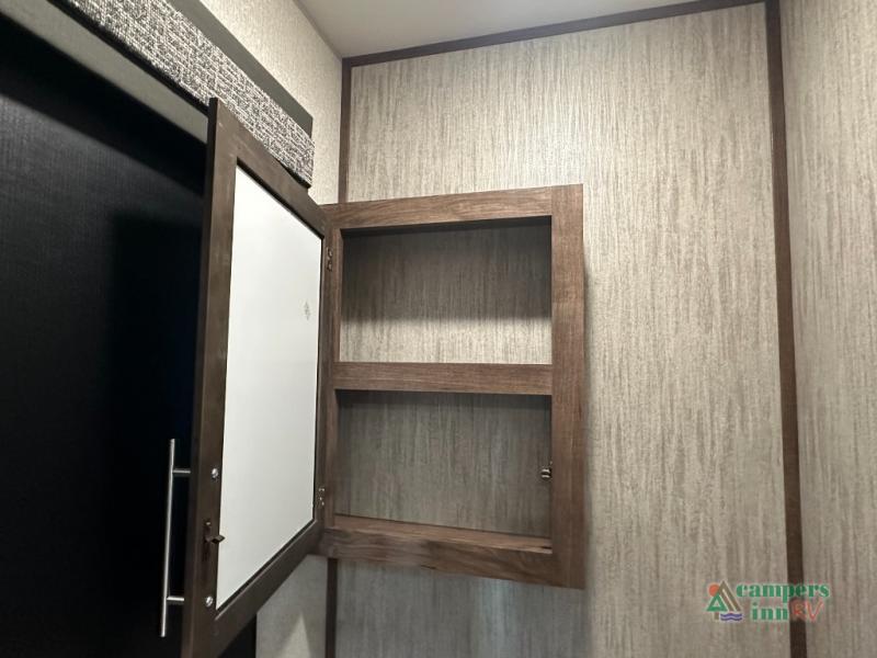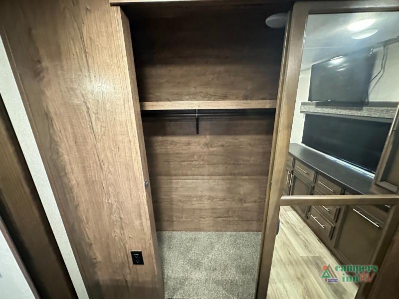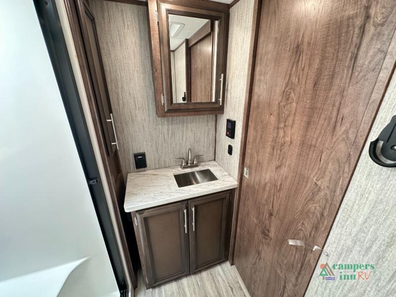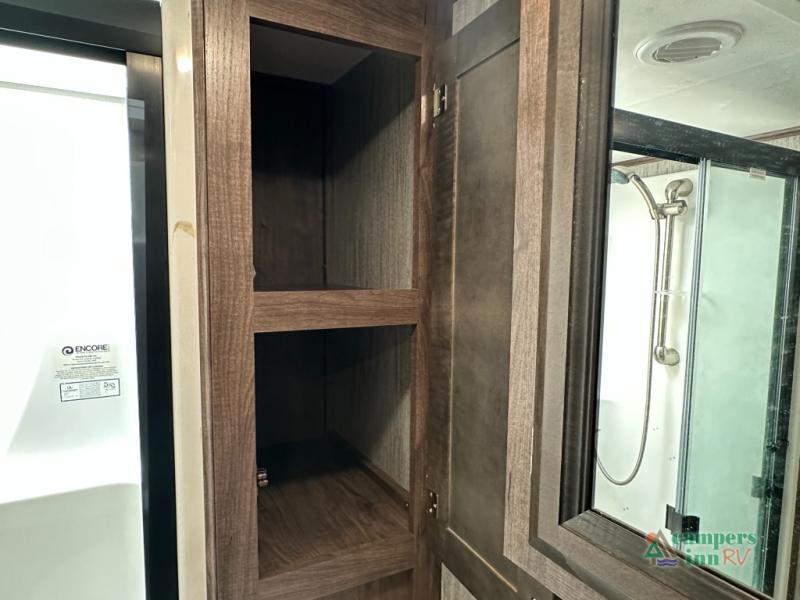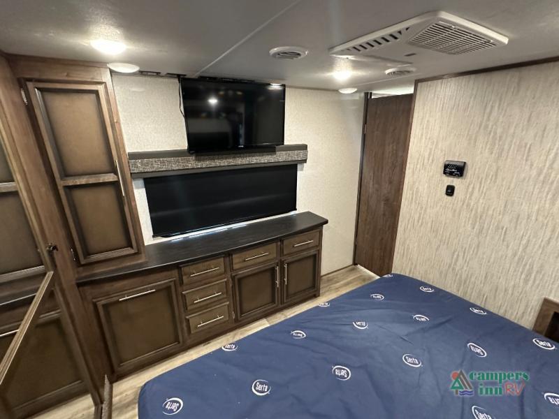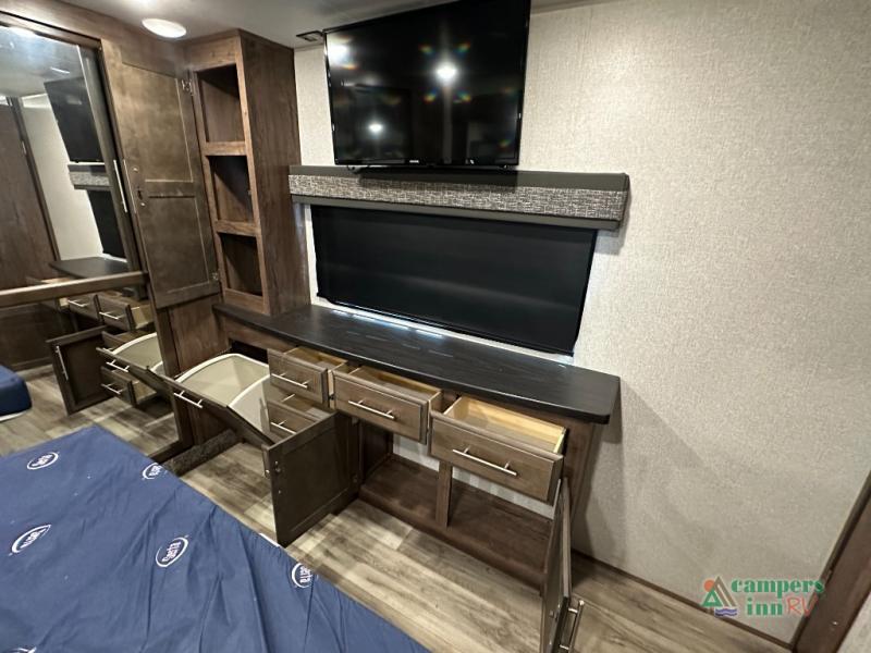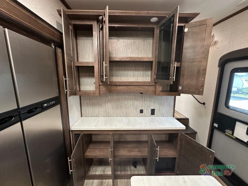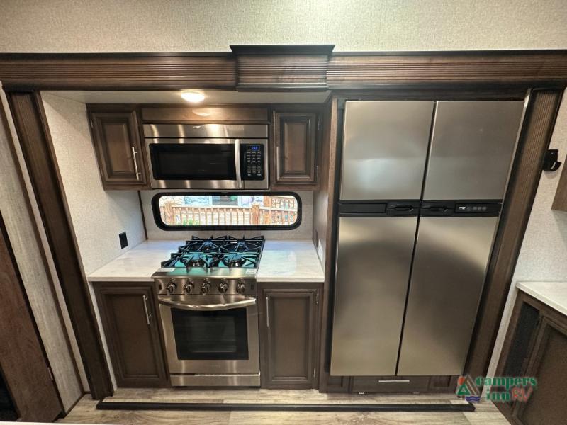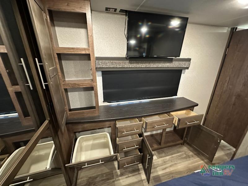 Convenience Pack: Auto leveling, 50A service with 2nd AC prep, power awning, backup camera prep, solar prep, tankless water heater, lithium-ready