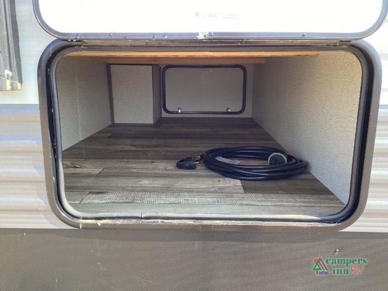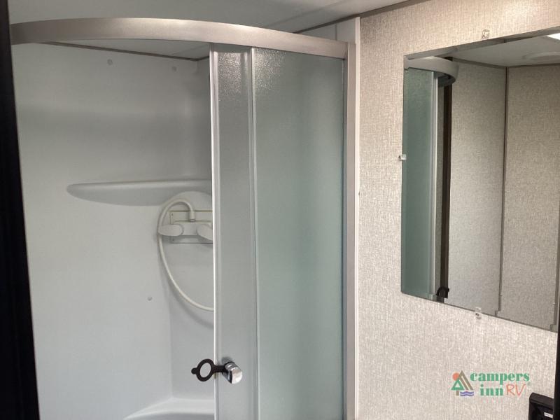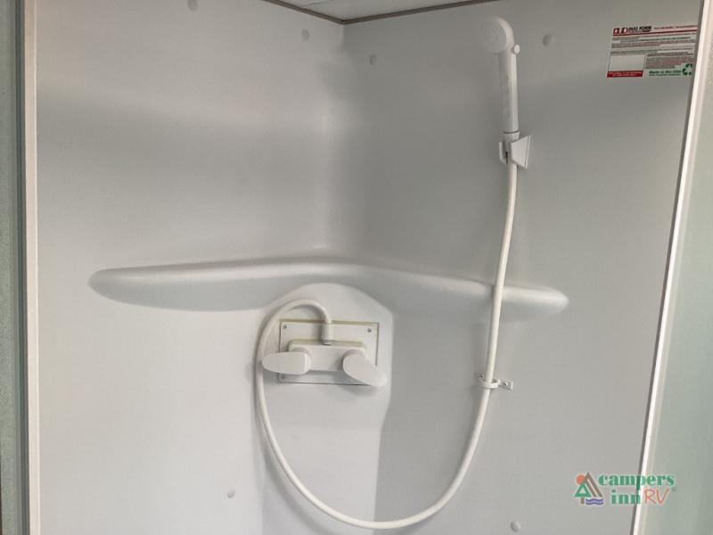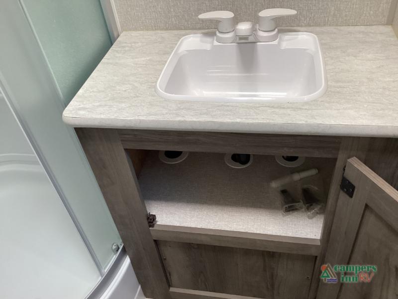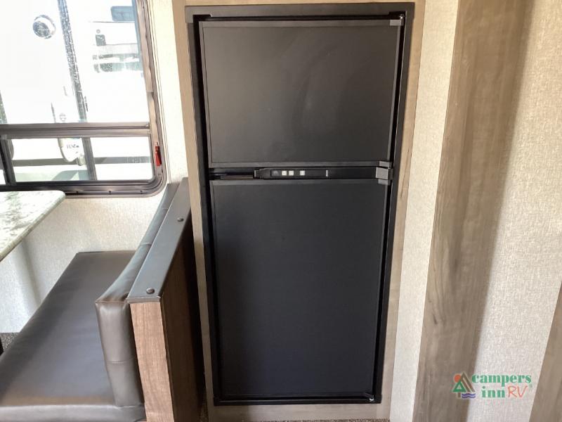 You and your spouse will love camping in this travel trailer with its front kitchen layout! With this design, it provides lots of counter space for you to prepare a delicious home cooked meal. You can enjoy your meals at the 70" jackknife sofa dinette with a center console and built-in bolster arms, and the 10 cu. ft. refrigerator is right next to it so you can quickly grab a drink. The full bathroom has everything you will need to freshen up each morning including a power vent and a linen closet to store your towels. The rear private bedroom features a queen bed with closets and nightstands on either side to place your electronics or a glass of water!