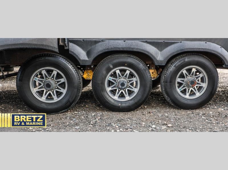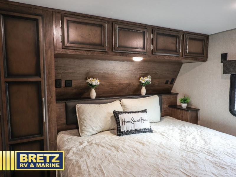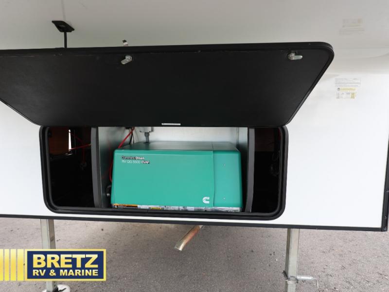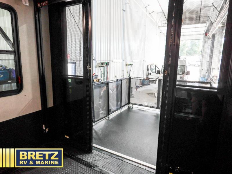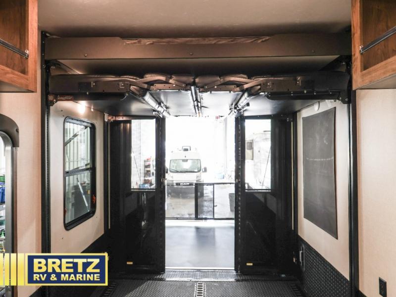 Book the campsite, tell your family and gather your off-toys to load up in this 15'9" separate garage that quickly converts to a second living area or bedroom when you add the optional power bed with sit and sleep. You will also appreciate the side man door for easy access on the road or at the campgrounds, the storage for your gear, and the 30 gallon fuel tank. In the main living and kitchen area you can relax on the super sofa with footrests, dine at the table with booth and chair seating, and watch the LED TV. The cook will love the counter peninsula to prepare and serve meals, and all the kitchen appliances in the slide out. Everyone can take turns getting cleaned up in the full bathroom, and you can retire to the master bedroom with a walk-around electric-tilt king bed or choose the queen option, and there is plenty of storage for your clothing plus a closet prepped for a washer/dryer option. You will find even more storage in the pass-through compartment.