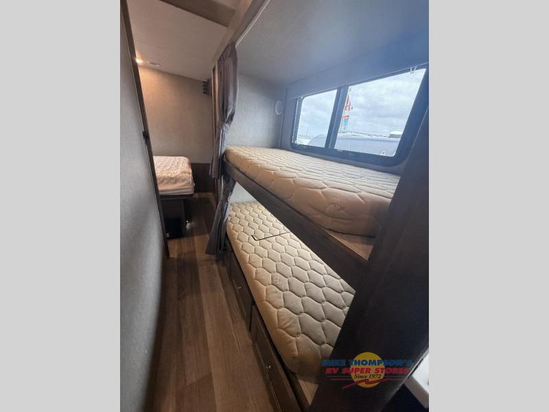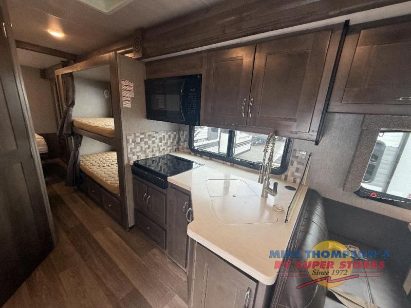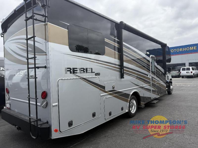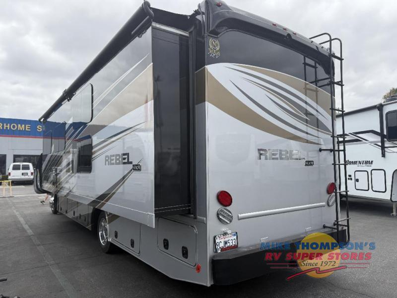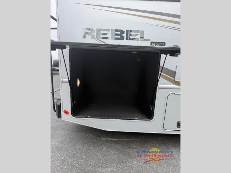 Become a new kind of traveler with this Rebel Super C diesel 4x4 motorhome! You will certainly appreciate how convenient it will be to have a dual-entry bath, and the master suite with allow you to store your clothing easily with the large wardrobe across from the queen-size bed. You can even bring along a few extra adventurers since the bunk above the cab, the deluxe booth dinette, and the jackknife sofa provide you with some extra sleeping space, and the great kitchen with its three-burner range, convection microwave, and residential refrigerator will make it easy to fill everyone's hungry bellies.