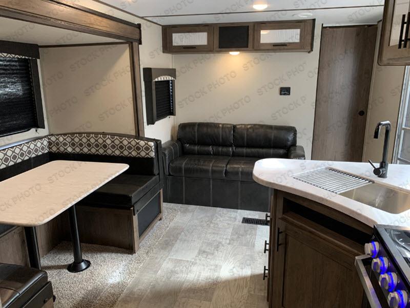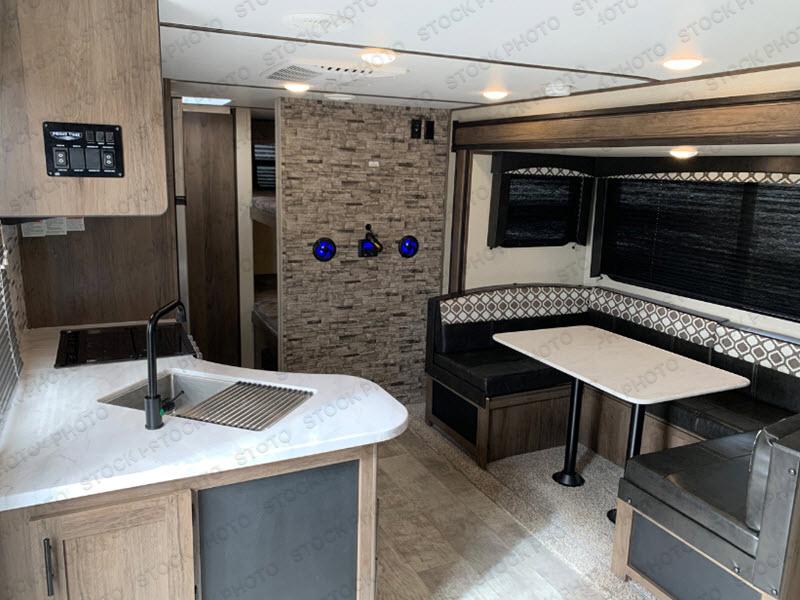 The search is over because this Avenger travel trailer by Prime Time RV is exactly what you've been looking for! From the sofa and U-shaped dinette to the queen-size bed and double-size bunks, your sleeping accommodations are taken care of. You will also find all the kitchen amenities needed to make snacks and meals while away enjoying the great outdoors, like a three-burner range top and large 17" oven, and you will also appreciate the addition of the outdoor speakers that will allow you to listen to your favorite music as you gather around the campfire for s'mores each night.