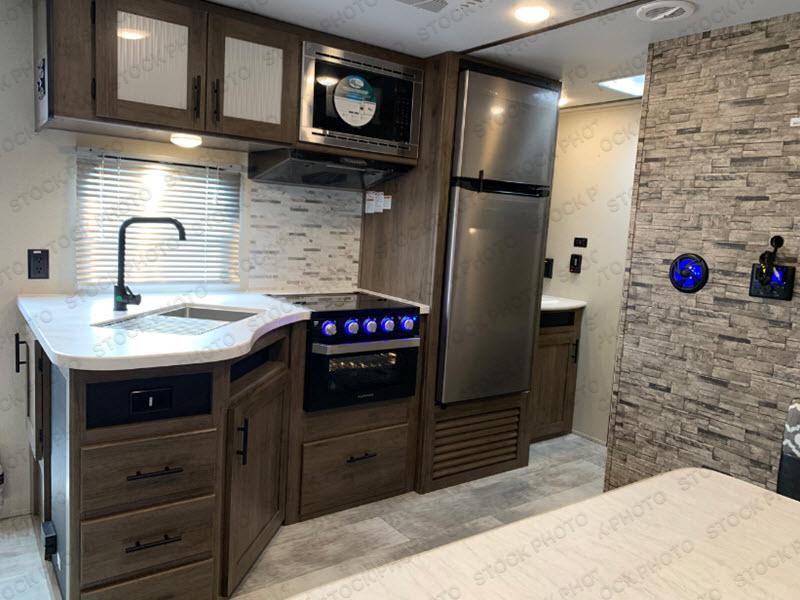 With premium fabrics and beautiful interior décor, the Prime Time Avenger travel trailers offer complete customer satisfaction! The innovative and lasting construction of the Avenger provides you with confidence as you travel. The Avenger is built with a powder-coated I-beam frame, an aluminum exterior skin, a PEX plumbing system, a Dynaspan 5/8" seamless floor decking, a secure tank system, and an extreme weather package. The interior has excellent features to accommodate all sorts of traveling types with its massive under-bed storage, Bluetooth entertainment system, in-floor ducted heat, large fully vented windows, and USB ports. You will also enjoy having an exterior hot/cold shower and a doggy D-ring so that you can rinse off your puppy's paws before taking them back inside for the night.
