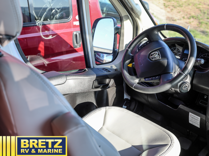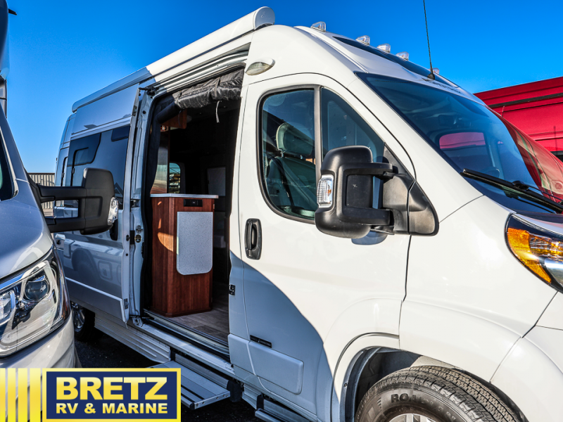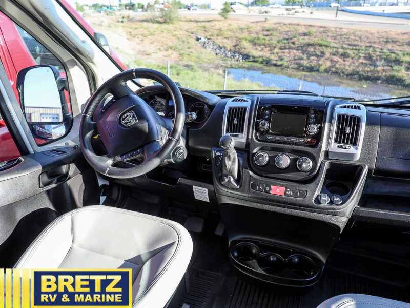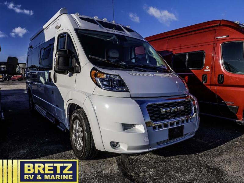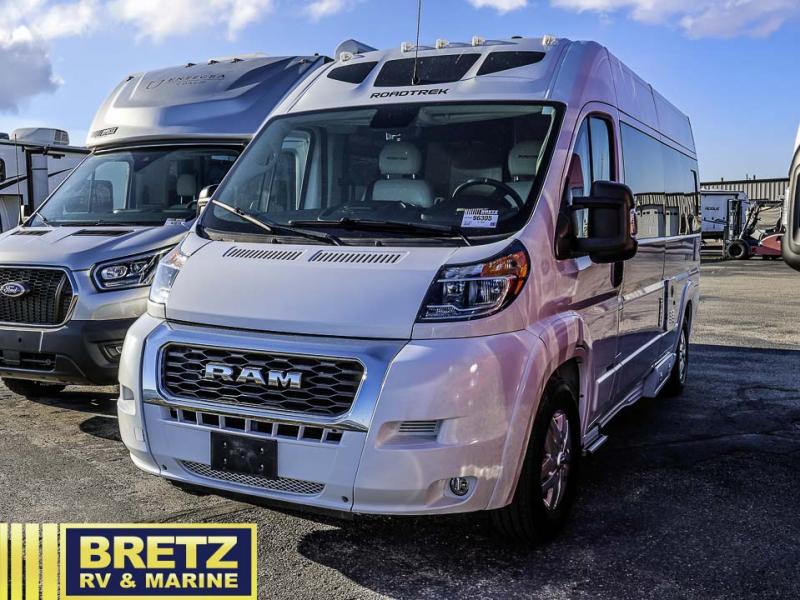 The Roadtrek Class B gas motorhomes are built upon the stylish Ram ProMaster chassis with a 3.6-liter V6 gas engine to power your trips near and far. The rearview backup camera, the stability program, and the Uconnect 3 with navigation and a 5" touchscreen will make the drive just as sweet as the destination. Each model includes a 12V refrigerator, a two burner recessed propane stove with a flush cover and built-in igniter, and ample storage space for all your belongings. The instant hot water system with 36,000 BTU will provide hot water when you need it, and the 16,000 BTU propane automatic furnace will keep you warm if you travel year around.
