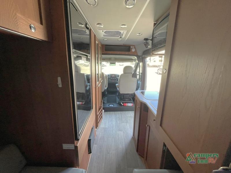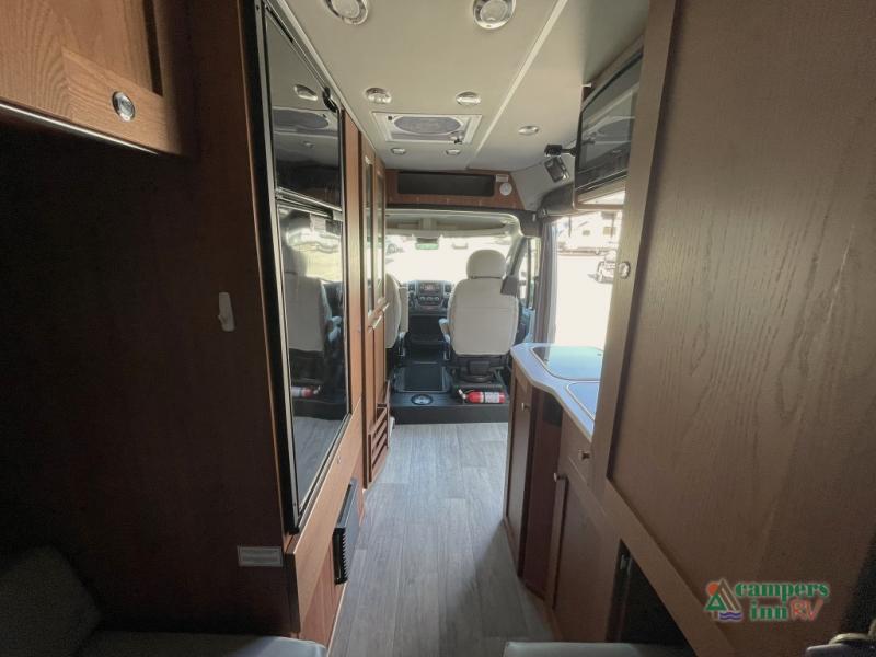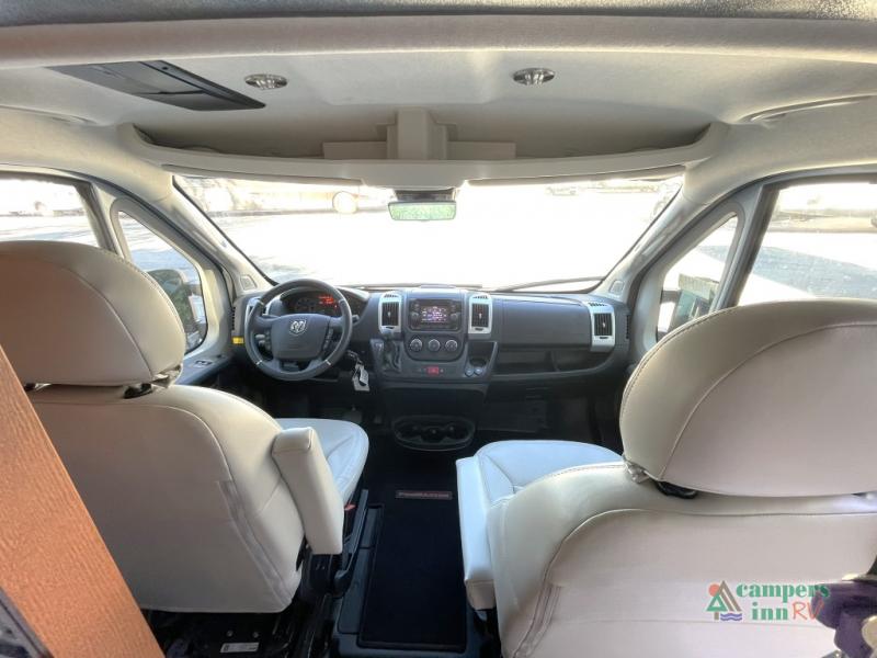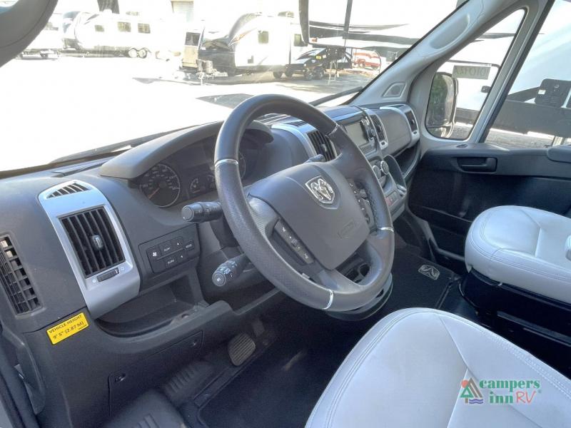 The Roadtrek Class B gas motorhomes are built upon the stylish Ram ProMaster chassis with a 3.6-liter V6 gas engine to power your trips near and far. The rearview backup camera, the stability program, and the Uconnect 3 with navigation and a 5" touchscreen will make the drive just as sweet as the destination. Each model includes a 12V refrigerator, a two burner recessed propane stove with a flush cover and built-in igniter, and ample storage space for all your belongings. The instant hot water system with 36,000 BTU will provide hot water when you need it, and the 16,000 BTU propane automatic furnace will keep you warm if you travel year around.