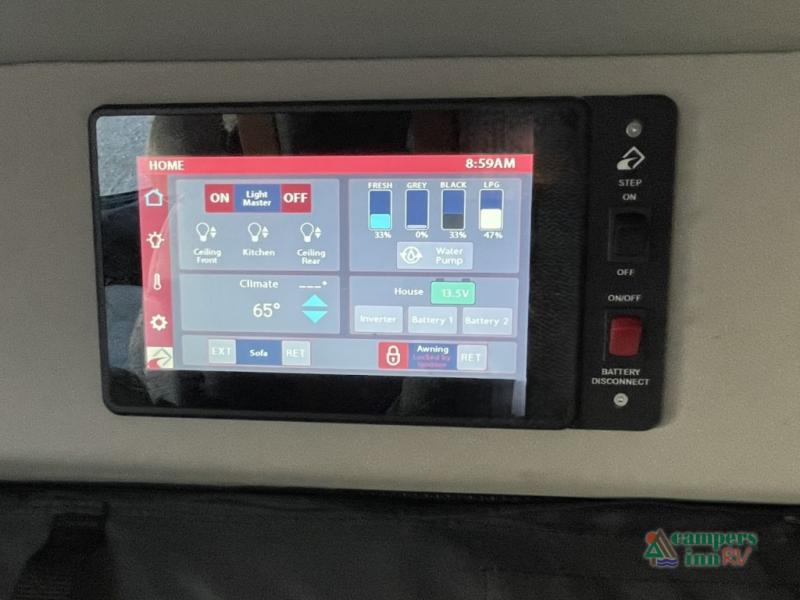 Traveling to see the grandkids or friends just got a whole lot easier in this gas coach! The two burner propane stove allows you to cook meals just like you would at home, and the slide-out pantry is sure to come in handy to store canned goods and spices. You'll enjoy watching movies on the 24" Smart TV, or you can spend your evening outdoors with the 11' power awning. After a day of exploring you can look forward to a great night rest on the forward facing rear power sofa that can convert to twin beds or a queen-size bed just like home!