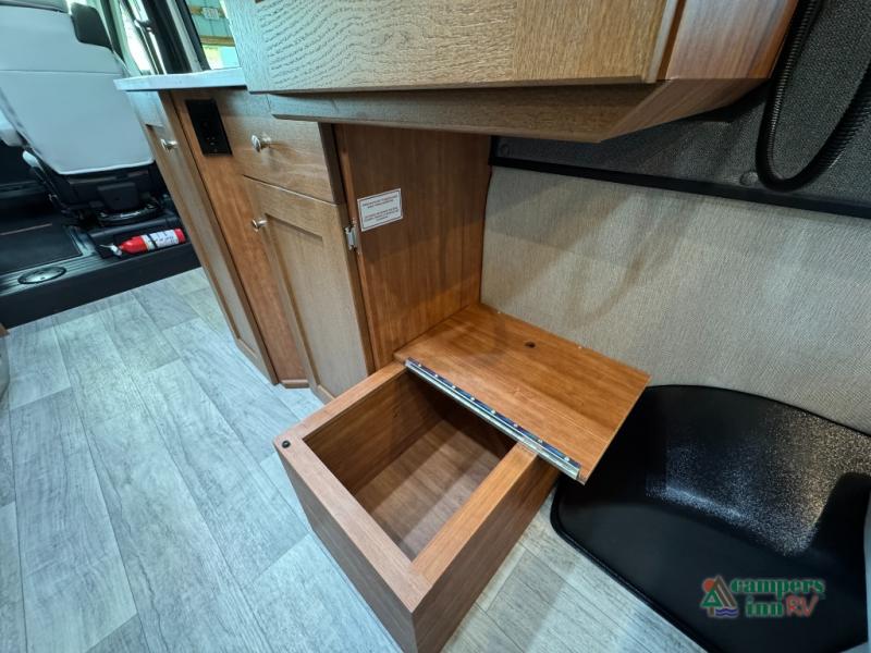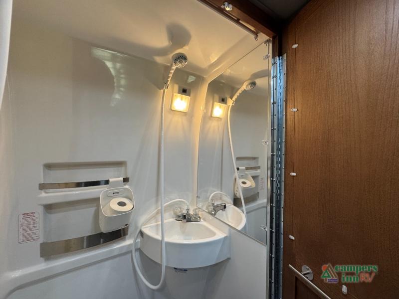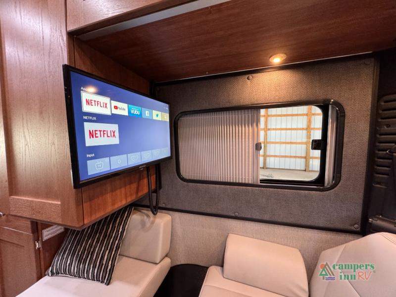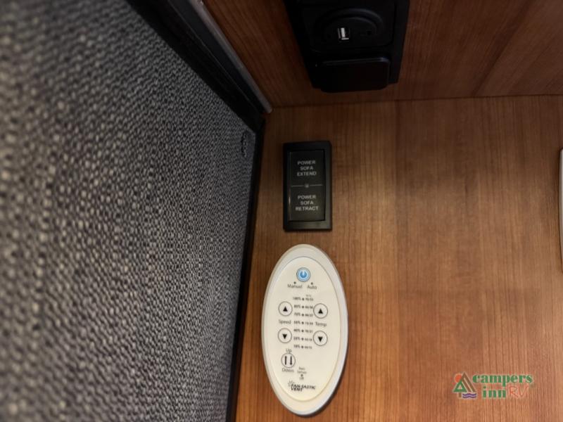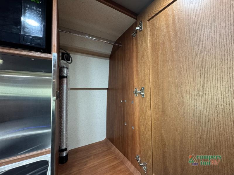 Traveling to see the grandkids or friends just got a whole lot easier in this gas coach! The two burner propane stove allows you to cook meals just like you would at home, and the slide-out pantry is sure to come in handy to store canned goods and spices. You'll enjoy watching movies on the 24" Smart TV, or you can spend your evening outdoors with the 11' power awning. After a day of exploring you can look forward to a great night rest on the forward facing rear power sofa that can convert to twin beds or a queen-size bed just like home!