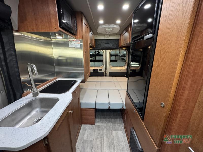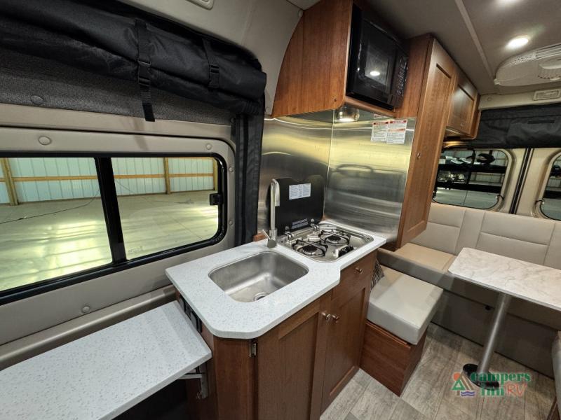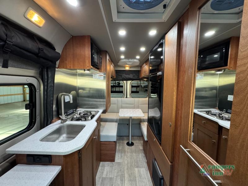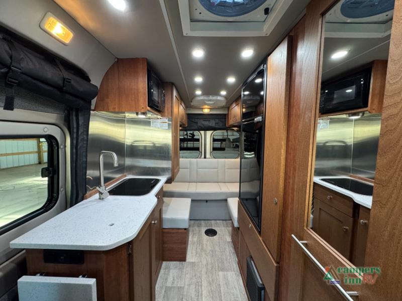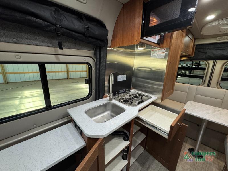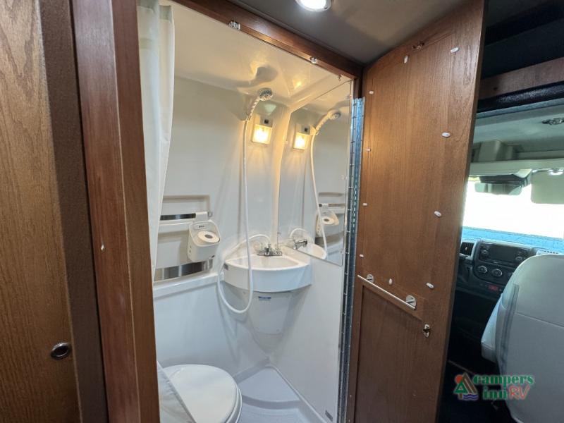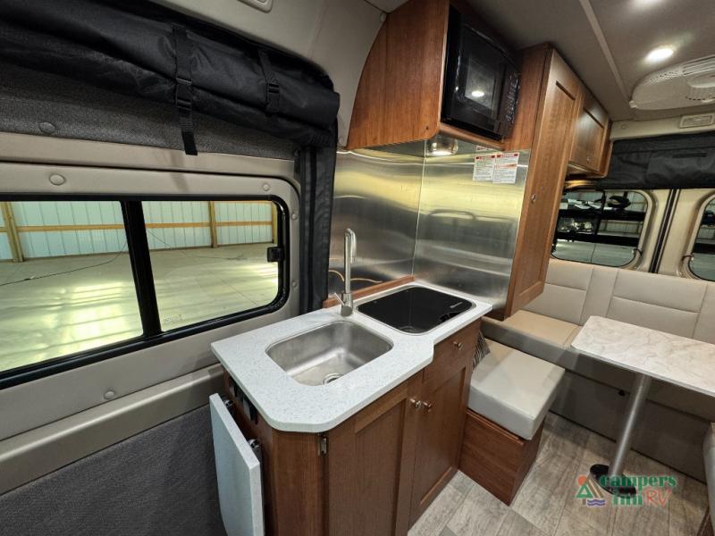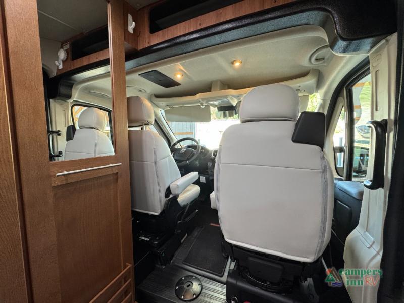 The Roadtrek Class B gas motorhomes are built upon the stylish Ram ProMaster chassis with a 3.6-liter V6 gas engine to power your trips near and far. The rearview backup camera, the stability program, and the Uconnect 3 with navigation and a 5" touchscreen will make the drive just as sweet as the destination. Each model includes a 12V refrigerator, a two burner recessed propane stove with a flush cover and built-in igniter, and ample storage space for all your belongings. The instant hot water system with 36,000 BTU will provide hot water when you need it, and the 16,000 BTU propane automatic furnace will keep you warm if you travel year around.
