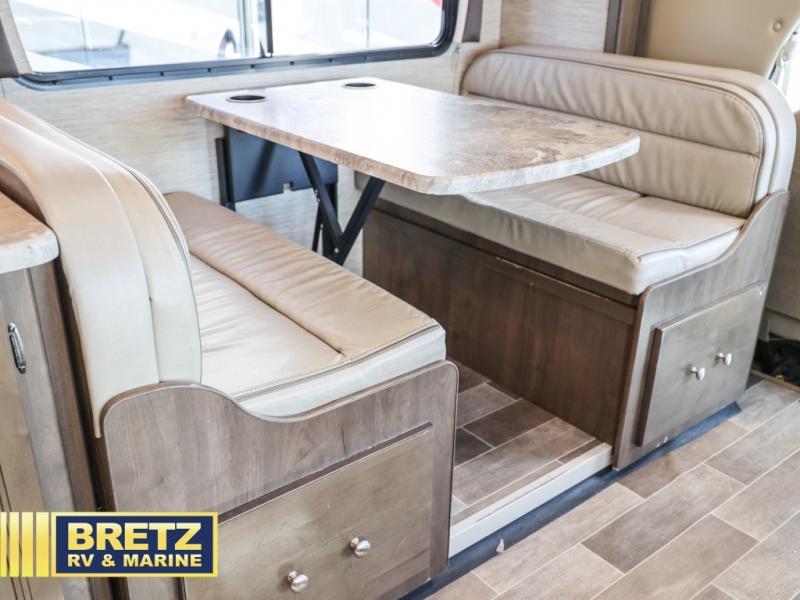 With each Thor Motor Coach Chateau Class C gas motorhome, you will have a Ford E-Series chassis or Chevrolet chassis depending on the model you select, and both are built with a welded tubular aluminum roof and sidewall cage construction giving you a sturdy foundation to enjoy for years! The added Onan RV QG 4000 gas generator will allow you to get off-grid so that you can experience nature without anything holding you back. Once you step foot inside, you'll find a space-efficient design, plush leatherette seating, residential vinyl flooring that provides easy care and a pet-friendly floor, a large single-bowl stainless steel sink with single handle faucet and pull-down sprayer, plus a bedroom USB power charging center for your electronics. Choose your favorite Chateau and start planning your adventures!