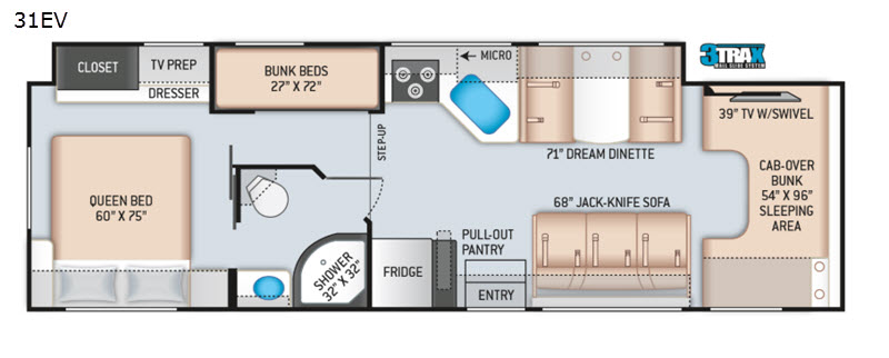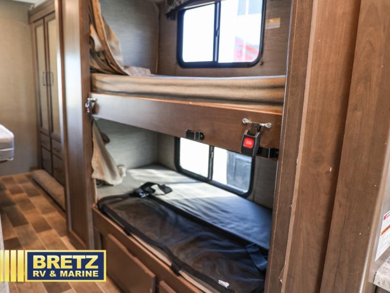 Enjoy the extra space that comes with the full-wall slide in this Chateau Class C gas motorhome! You'll have all the room that you need to spread out and enjoy the master suite, the 68" jackknife sofa, and the 71" Dream Dinette. Plus, your kids will be super excited to find a set of bunk beds as well as a 54" x 96" bunk above the cab. Another handy feature found in this coach is the dual-entry bath which can be accessed from the main living area or the rear bedroom. If you want to take this model up a notch, check out 31E which has a couple of extra features and options that you might like in your next RV.