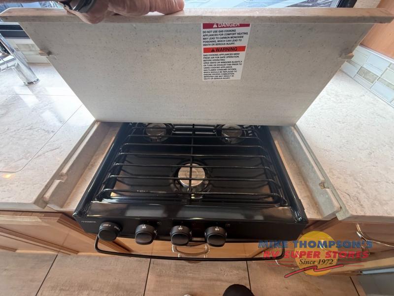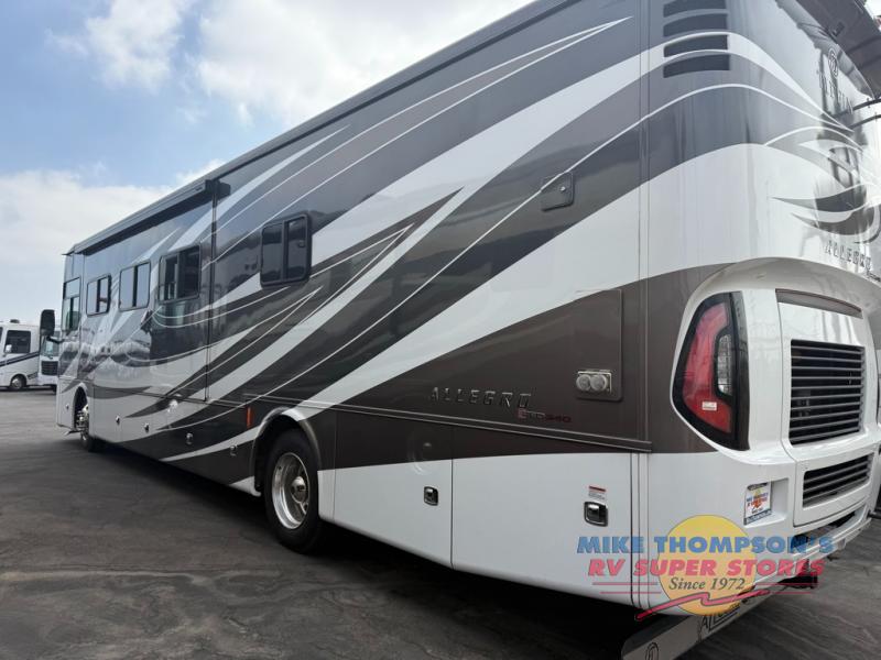 The open road sounds amazing, and when you are traveling in an Allegro RED 340 Class A diesel coach by Tiffin Motorhomes, it will be! The PowerGlide or Freightliner rear engine diesel chassis and straight rail chassis frame give you quality that will last, and the Cummins B6.7 engine offers you 340HP. If you want to tow your commuter vehicle, the 5,000 lb. hitch rating allows you to do just that. Inside, you will love the look of the Natural Alder solid cabinet doors, the convenience of the soundbar while you watch TV, and the many views from the panoramic galley window. Come see why the Allegro RED 340 with its entry-level price point is the perfect solution to your traveling needs!