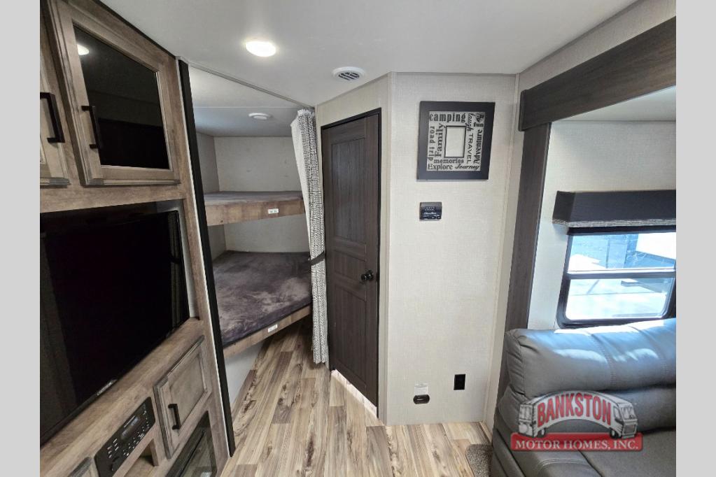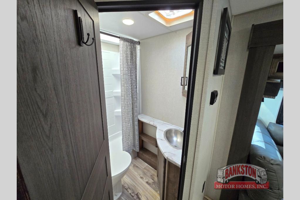 You can explore and relax with the lightweight Venture RV SportTrek travel trailer! The Venture-exclusive LevelMate PRO is going to make it easy to set up your trailer so that you can get to the fun activities sooner, and the Weather-Shield Package has an enclosed and heated underbelly, enclosed gate valves, 360-degree residential fiberglass insulation, and a reflective PVC roof membrane so that you can travel confidently. The NXG Huck bolt frame is a superior-quality frame constructed with high-strength low-alloy steel, which eliminates frame failures, construction issues, and corrosion caused by incomplete coverage. Some of the other enticing features of the SportTrek are the HDMI/DVD stereo, slam-latch baggage doors with magnetic catches, power tongue jack, hot/cold outside shower, Keyed Alike key system, and the Safe-Tek hidden storage with charging center..