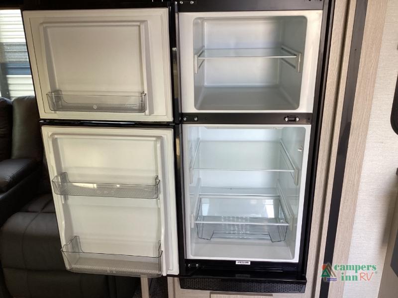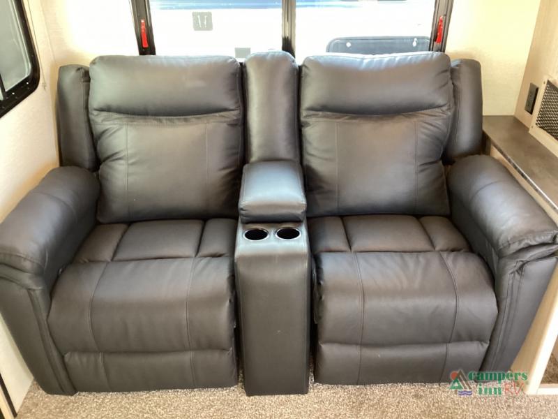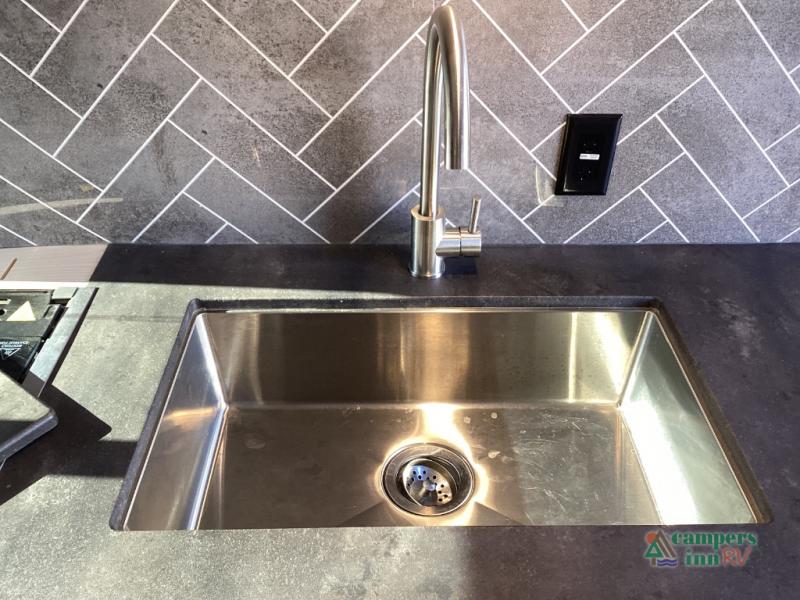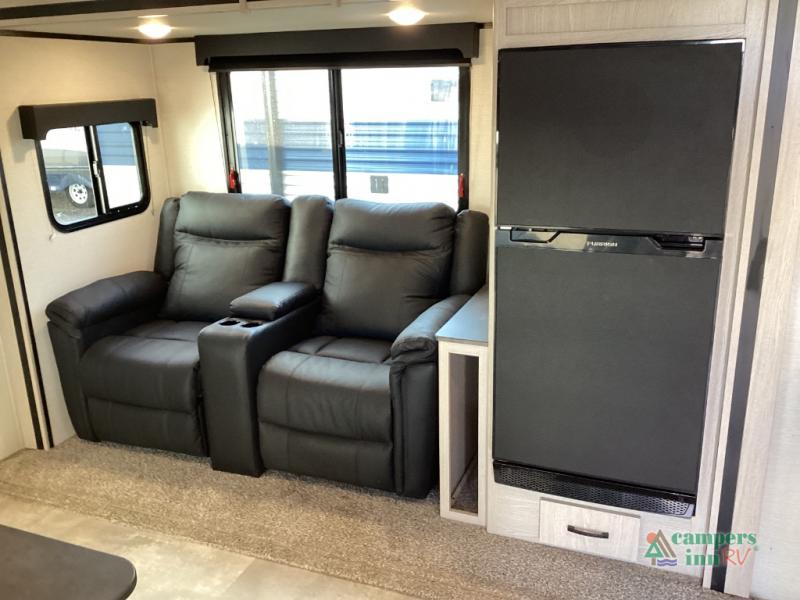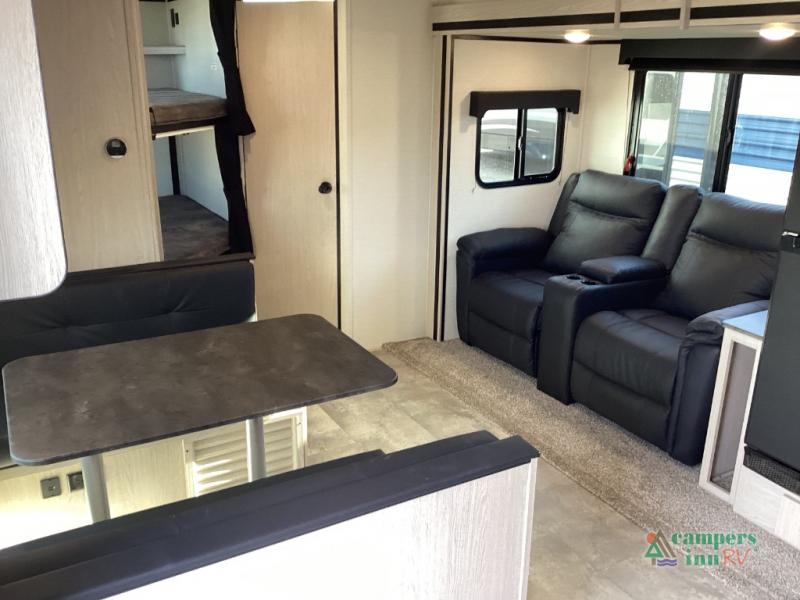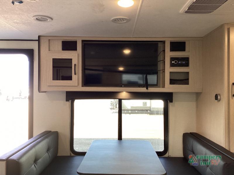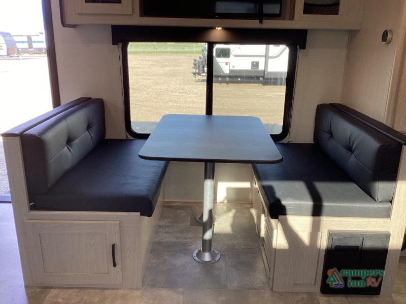 One slide-out opens the living area to give you a sofa across from a booth dinette—perfect for movie nights or lazy mornings.Outdoor & Indoor Kitchens