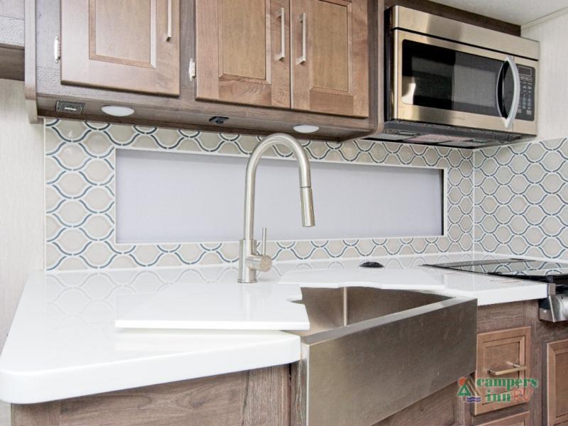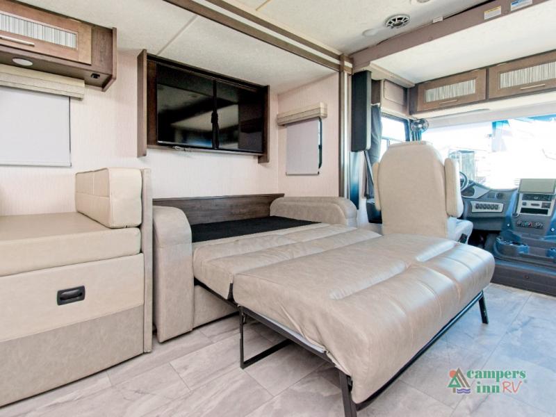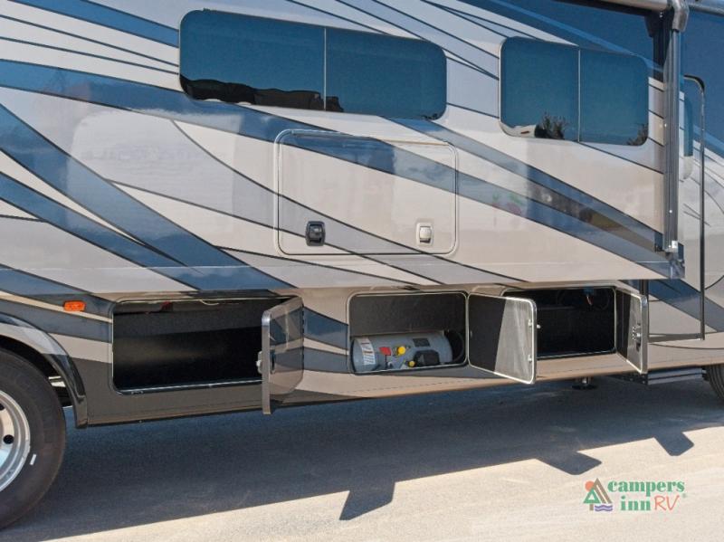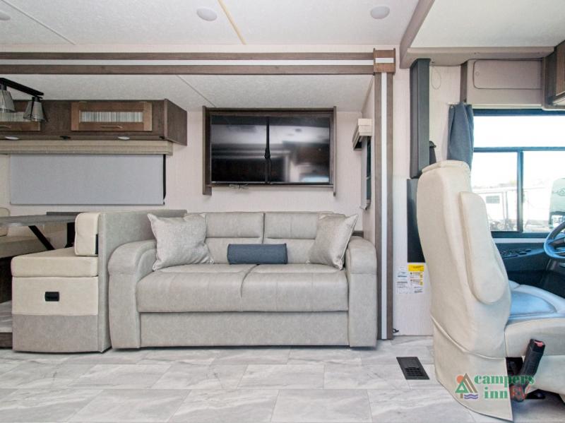 Built on a Ford F53 chassis with a powerful 7.3L V8 engine, the Encore is engineered for smooth, reliable travel. The Azdel composite sidewalls, crowned fiberglass roof, and automatic leveling jacks ensure long-lasting durability and easy setup. Plus, with pass-through basement storage, an exterior propane hookup, and HD backup and side-view cameras, you’re ready for any adventure.
