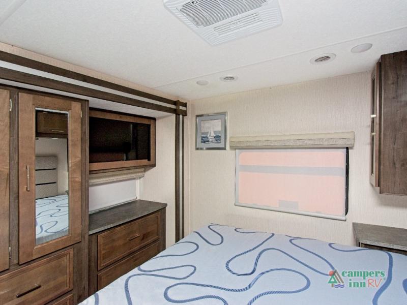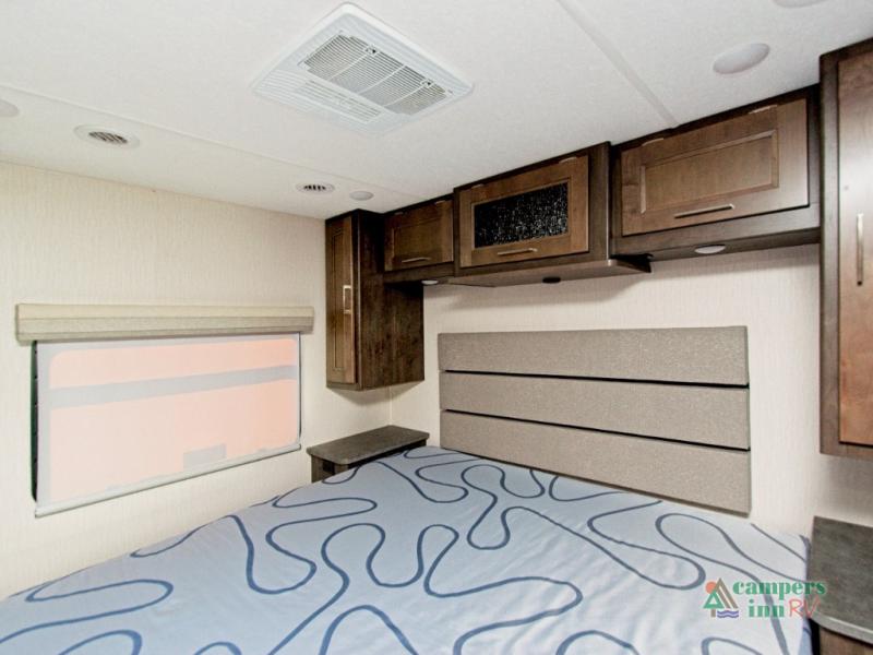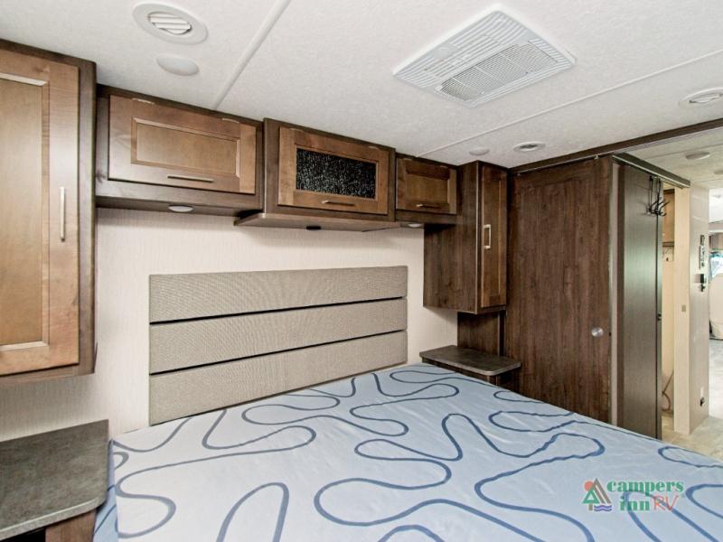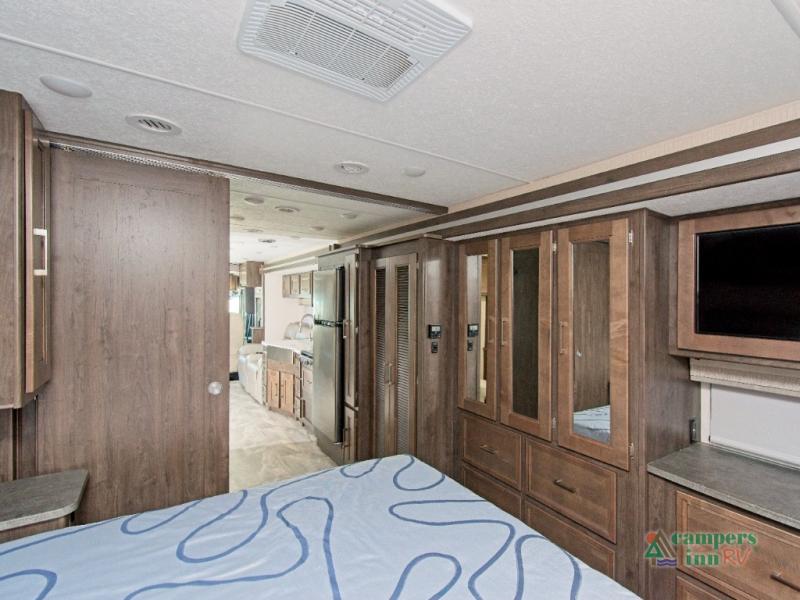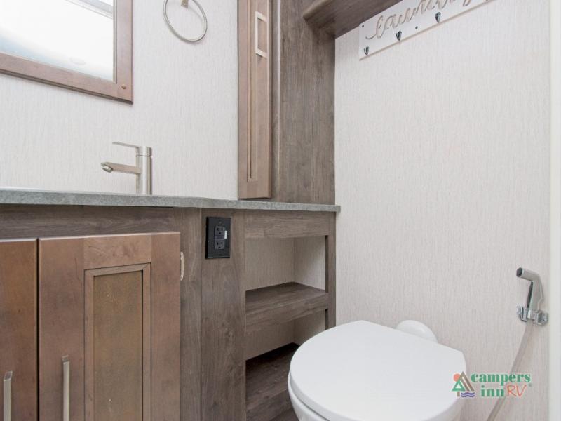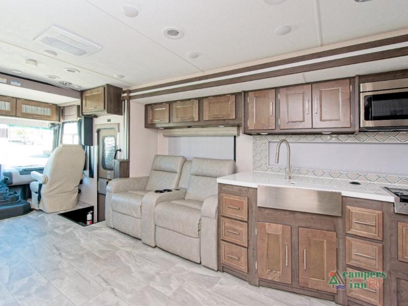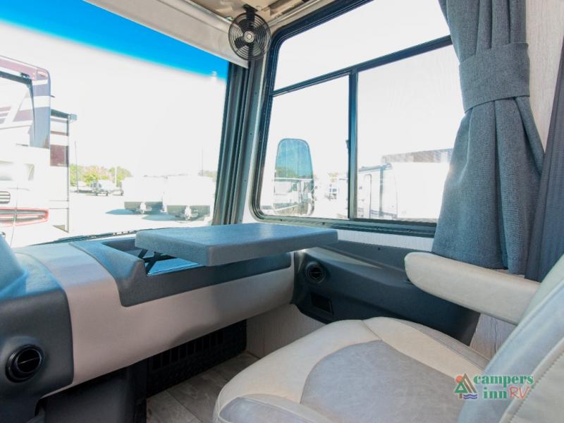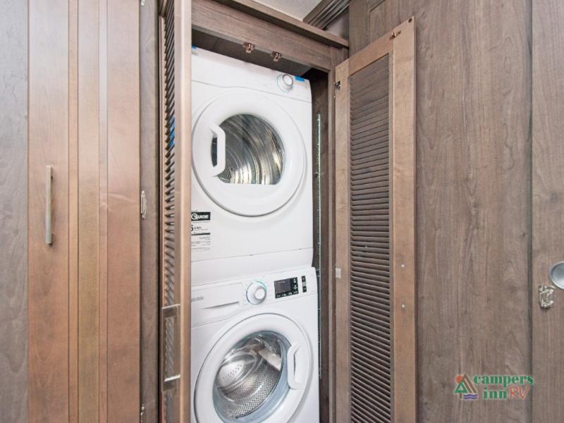 Need to stay productive on the road? The built-in passenger workstation makes it easy to work remotely. At night, retreat to the private rear bedroom featuring a 70" x 74" king bed with a CPAP station and overhead storage. Add the optional stackable washer/dryer for even more convenience.