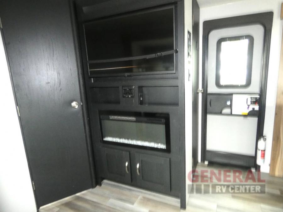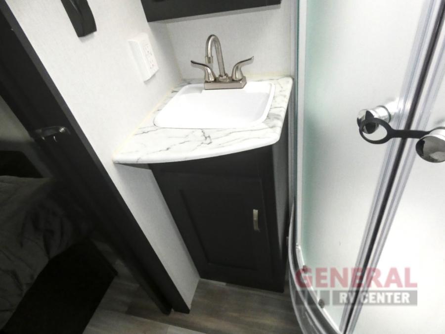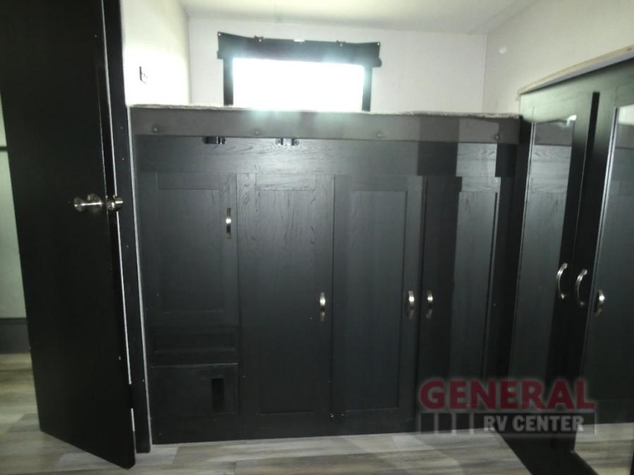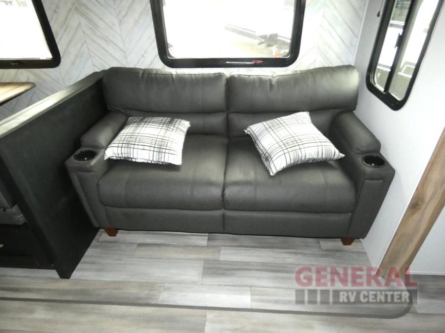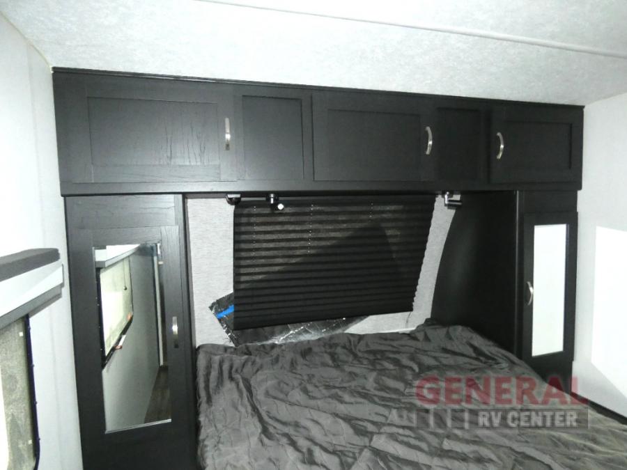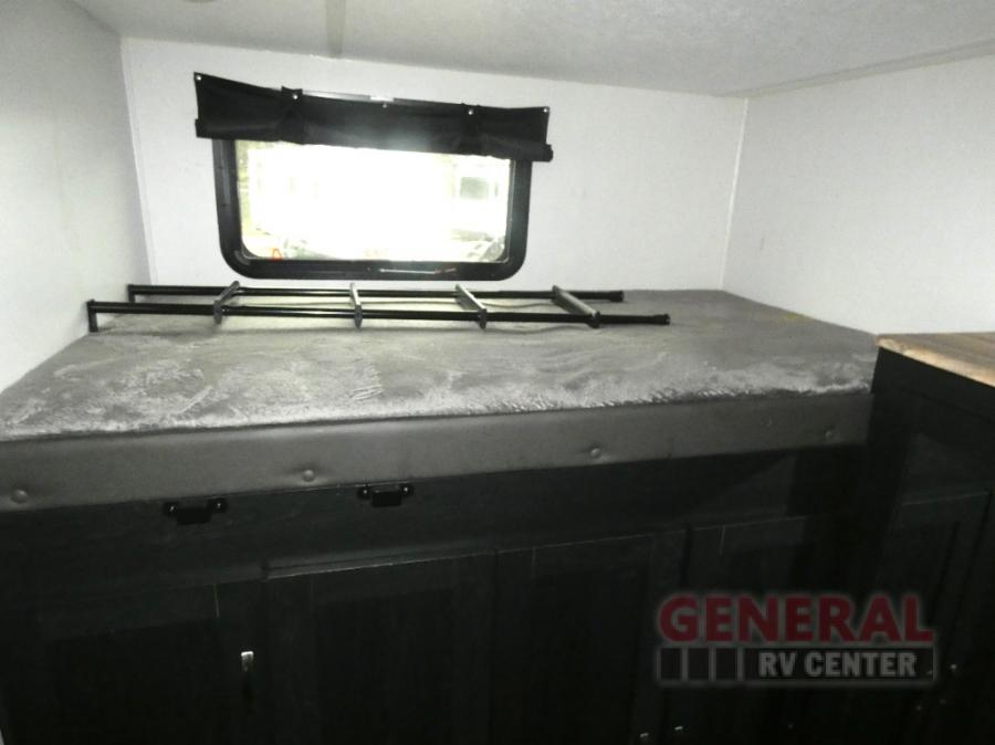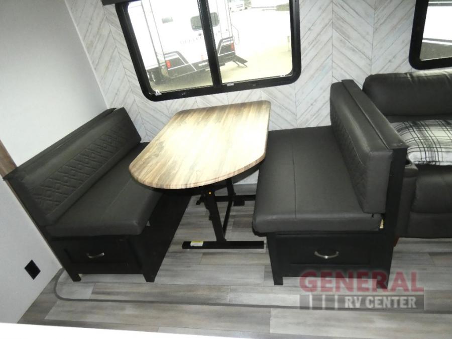 Wow, check out this triple slide out travel trailer that can sleep eight people each night. Your guests will have the rear bunkhouse with two bunks and a roll-over sofa. The dual entry bath will create a front master bedroom you are sure to love, especially with a queen bed and dual wardrobes. A kitchen island will provide more counter space, and the booth dinette can be used as dining space when you aren't eating outdoors at the picnic table. And don't forget to check out the exterior with its full camp kitchen, 20' power awning, and full pass through storage!