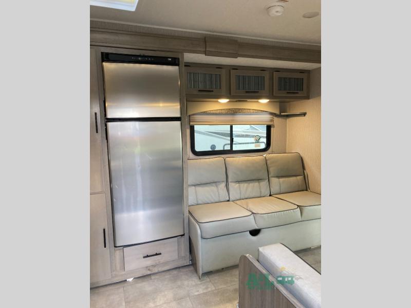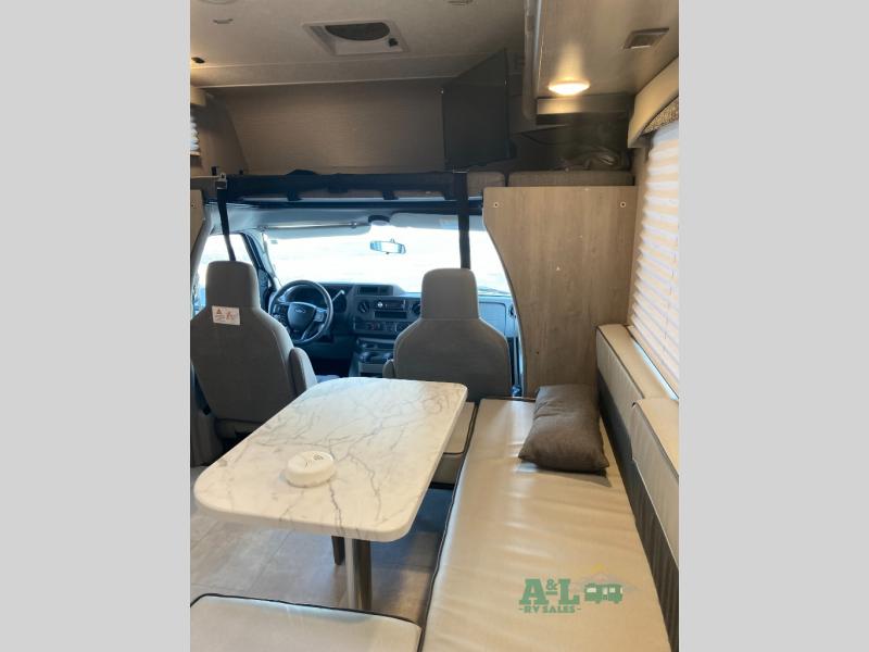 Each Coachmen Freelander Premier Class C gas motorhome starts with a deluxe chassis package, Azdel composite sidewalls and cabover construction, and CrossFlex PVC, polyester reinforced roof material for added strength. The CRV Supersprings Ride features a dynamic balanced driveshaft system, SuperSpring rear self-adjusting helper spring, and electronic stability control for the ultimate driving experience. The interior is designed to make you feel at home with pleated night shades, premium vinyl flooring, Luna cabinetry, and stylish kitchen backsplash. Some of the convenient equipment you'll find included with these motorhomes are the touch screen dash radio with a backup monitor, USB charging ports, an Even-Cool A/C ducting system, and an Onan 4.0kW gas generator. Start a new adventure today in a Freeland Premier!