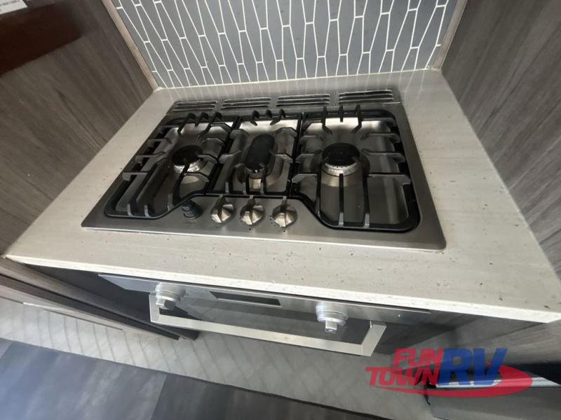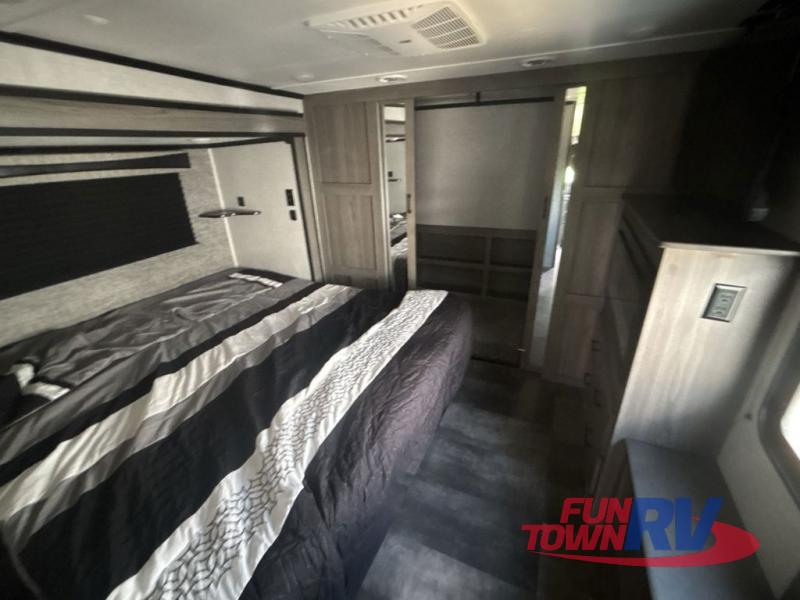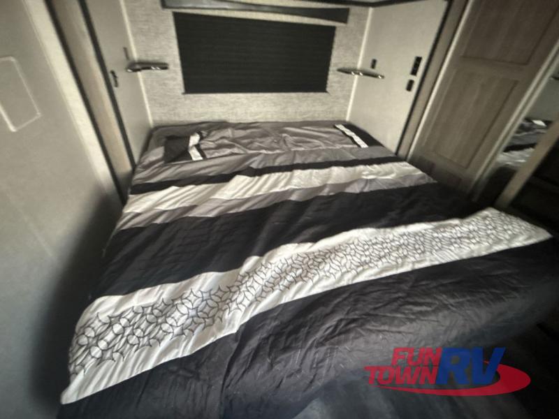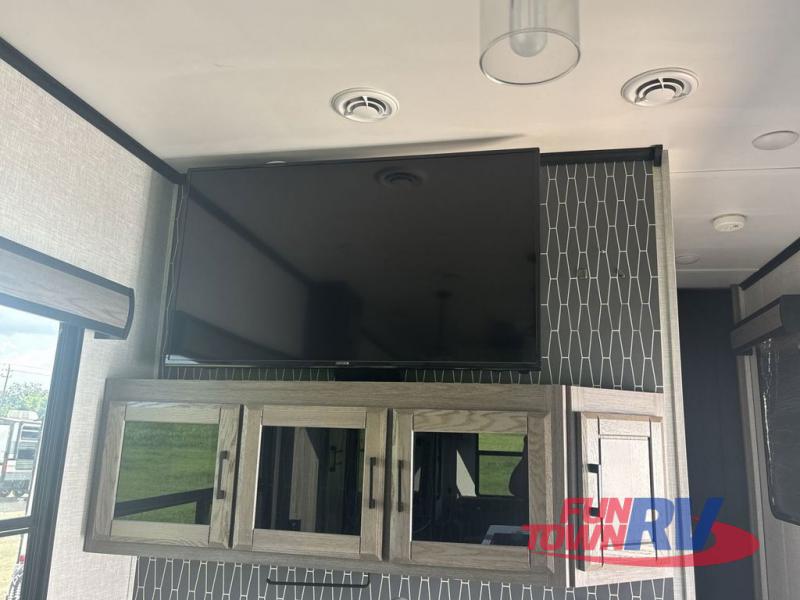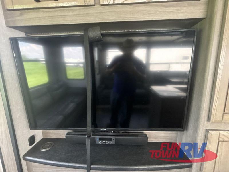 Every element of your home has been considered when creating these CrossRoads RV Cameo fifth wheels! From the oversized pantries, master suites, and full size theater seats with heat and massage to durable construction with the largest I-beam chassis in the industry. They also have the industry's first front windshield, an aerodynamic profile, and a full walk-on roof with an Alpha Ply II roof material. These modern fifth wheels were created with the customer in mind which is why they have convenient features like pass-through heated storage, spacious walk-in closets, an AM/FM/Bluetooth sound bar, a 6-point hydraulic auto level, and a 2" receiving hitch with 4-way plug. The Twice Is Nice package adds even more comforts like dual fireplaces for cozy evenings inside, dual awnings to protect you rain or shine, dual A/C units to keep you cool on those hot summer days, and dual wireless charging stations so your electronics can be at 100%. Come find the right model for you!