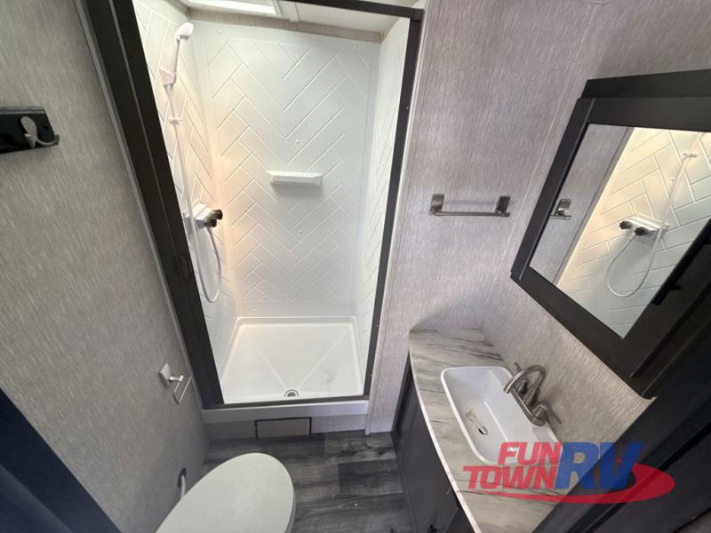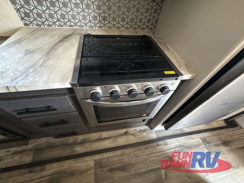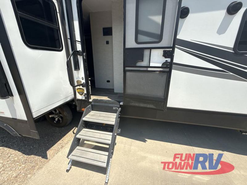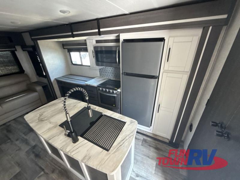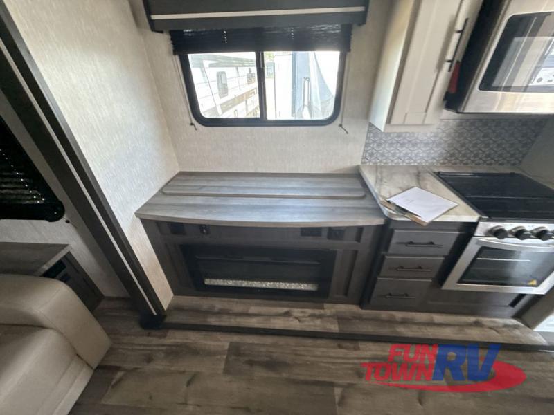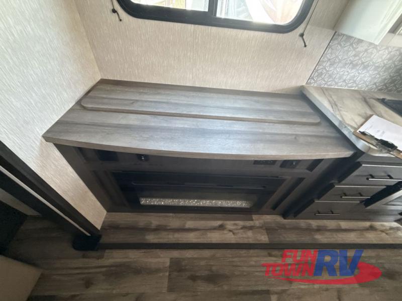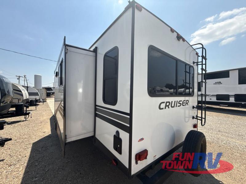 Each one of these CrossRoads RV Cruiser Aire fifth wheels and travel trailers have high end features incorporated into them! Some of these features include a Secure Stance entry step, pass-through storage with magnetic slam latch doors to keep your gear stored safely, and electric awnings with LED lights to highlight the good times at night. Their construction consists of a one piece seamless super flex roof, a five sided aluminum construction, and an aerodynamic painted front cap for an easier tow. Stay connected where ever you go with the HD digital TV antenna with Winegard Wifi prep. The luxurious interiors are filled with at home comforts like Chef Collection appliances, full trunk storage under the king bed, and fireplaces depending on the model. Come find the perfect one for you and your family today!
