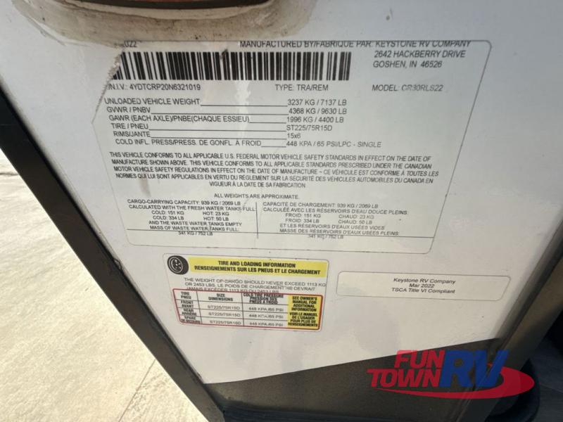 CrossRoads RV Cruiser Aire travel trailer CR30RLS highlights: