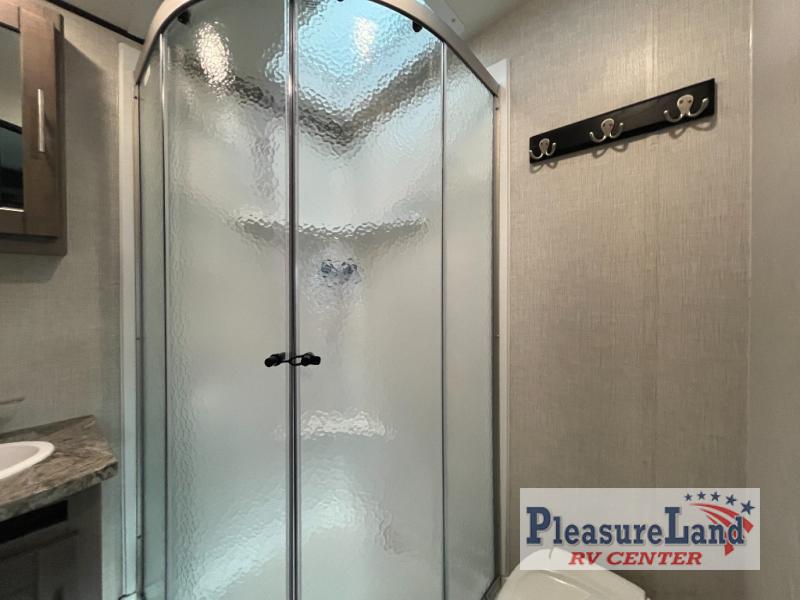 With any Sunset Trail travel trailer by CrossRoads RV, the interior offers a stainless steel farmhouse single bowl sink with a cover, solid surface countertops in the kitchen, a 12 volt refrigerator, USB ports in the bedroom and main area, and a Connexx entertainment TV with soundbar for inside enjoyment. Also included is the Extreme Weather package with maximum insulation with reflective foil, a 30,000 BTU furnace, and a 2" heat duct in the enclosed underbelly for four seasons of traveling. And the Blade Air system offers 20% more airflow and re-engineered components on the A/C. The HyperDeck flooring is water resistant, fiberglass reinforced and has polypropylene layers. Make your lightweight and comfortable RV decision today!