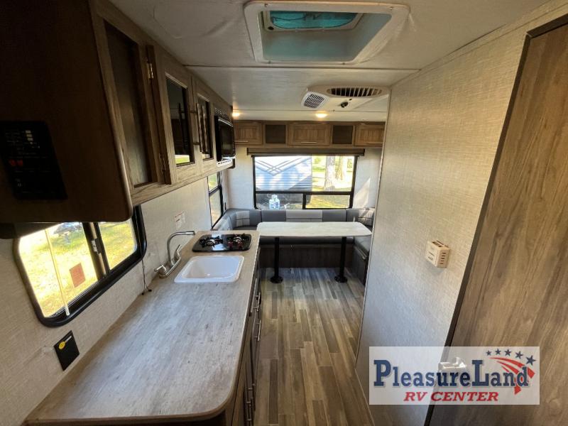 This Zinger Lite travel trailer is easily towed with a lightweight truck or SUV. Hook it up and you're ready to start your next trip! With room to sleep four, bring along the grandkids or your neighbor friends. You'll love the large U-shaped dinette located at the rear of the unit. This travel trailer features a 10-cu. ft. refrigerator, an oven, and a pantry in the kitchen for all the late-night goodies. After a day of hiking, you'll appreciate the RV queen bed and the 36" tub in the full bathroom.