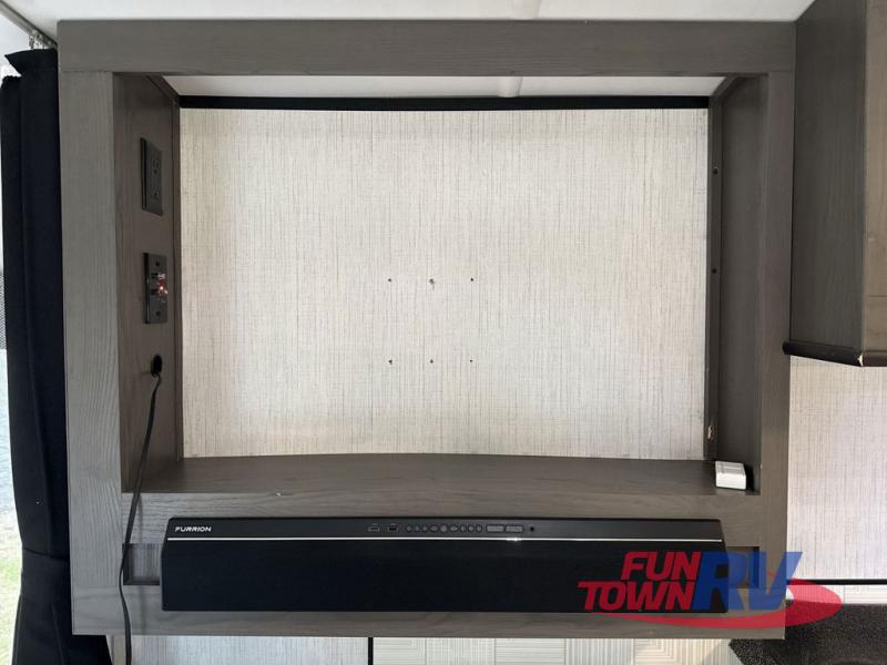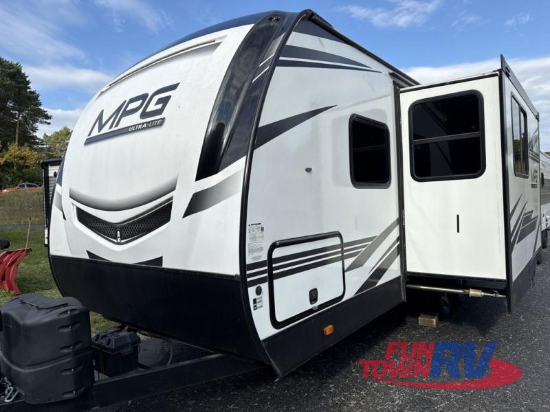 With any MPG travel trailer or toy hauler by Cruiser you will find a 6' 11" barrel roof, Azdel composite laminated walls, and a high gloss fiberglass front cap with LED lighting for a sleek look. There are seamless kitchen countertops and plywood flooring that will be easy to clean, plus residential hardwood cabinets with hidden hinges for a more at-home feel. The slam latch baggage doors with magnetic latches will make loading up easier than ever, plus the full belly storage system includes LED lights you are sure to appreciate. Each model also includes multiple charging stations with 12v and USB ports, a four speaker soundbar system to listen to your playlists, and a dual ducted A/C to keep you cool during those hot summer months!