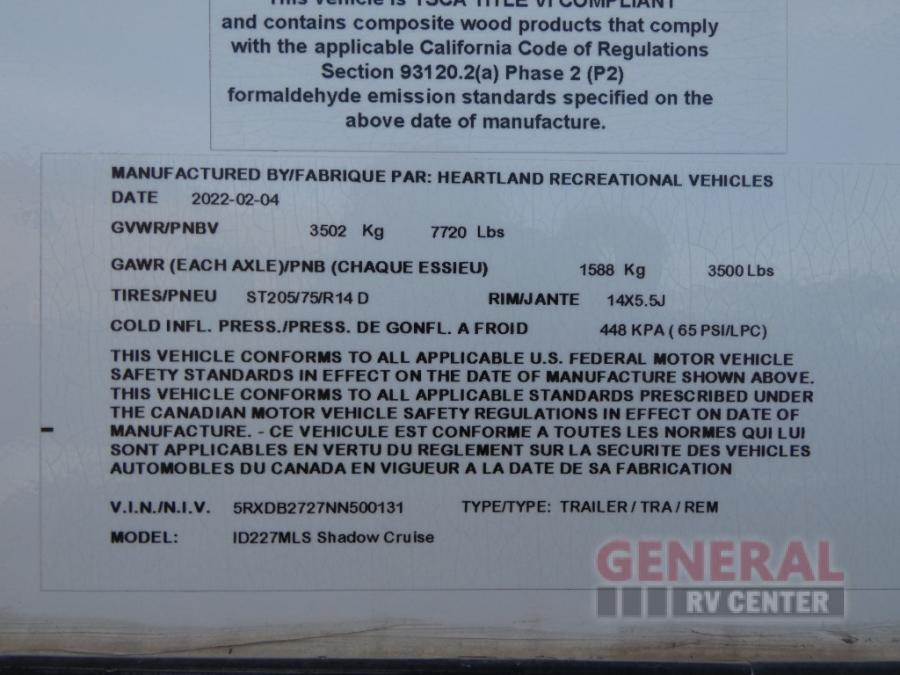Cruiser Shadow Cruiser travel trailer 227MLS highlights: