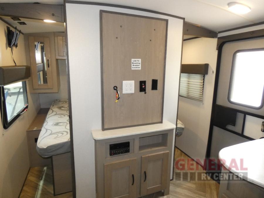 Each one of these Cruiser Shadow Cruiser travel trailers come with convenient features for you to make memories that will last a lifetime! The five sided aluminum framing holds together the Azdel composite laminated sidewalls which will keep your unit from rotting away, plus the surround seal slide system has a rain gutter to aid in keeping water out. Their strong foundation is built with a powder coated structural I-beam frames and three times the amount of required full-height cross members to provide a more solid floor foundation with more attachment points. Travel any time of year with the Extended Season package that includes radiant foil and ducted heating. There is also dual ducted 13,500 BTU A/C to keep you cool and a high BTU ducted furnace to keep you warm. The patent pending full belly pass-through storage area is LED lit so you can see all of your gear and slam latch baggage doors with magnetic latches to keep it in place while you access your items. Come find the perfect model for you today!