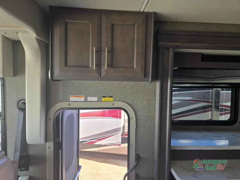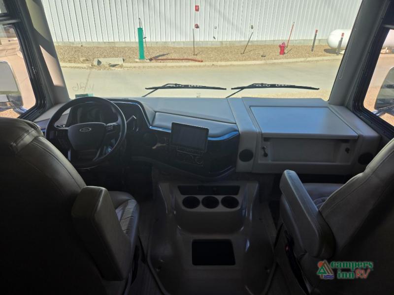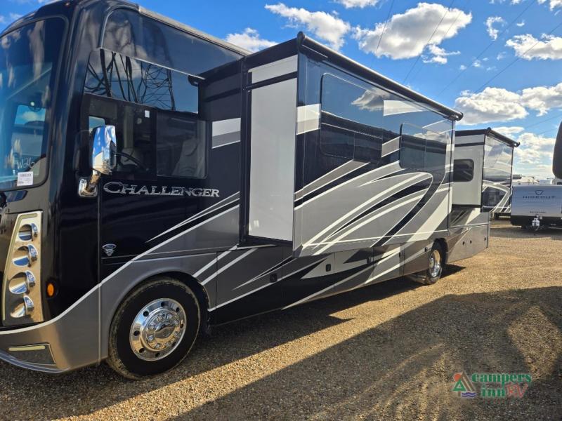 Hop on board the Challenger Class A gas motorhome by Thor Motor Coach for an adventure of a lifetime. The modern dash features a 10.1" touchscreen dash radio with Bluetooth, Axerra Navigation and Sirius/XM prep, plus there are reclining/swivel leatherette captain's chairs for your comfort. Setting up your coach will be a breeze with the automatic leveling jacks with touchpad controls, and each model includes an Onan RV QG 5500 gas generator, dual roof A/C's, and many more amenities for hassle-free camping. The interior of the Challenger will have you feeling at home in a heartbeat. Residential vinyl flooring, solid surface countertops, and satin-finish cabinetry are just a few comforts you will enjoy. Each model also includes a Winegard ConnecT WiFi extender +4G to keep you connected to the outside world as you travel, and an entertainment package that will never leave you bored!