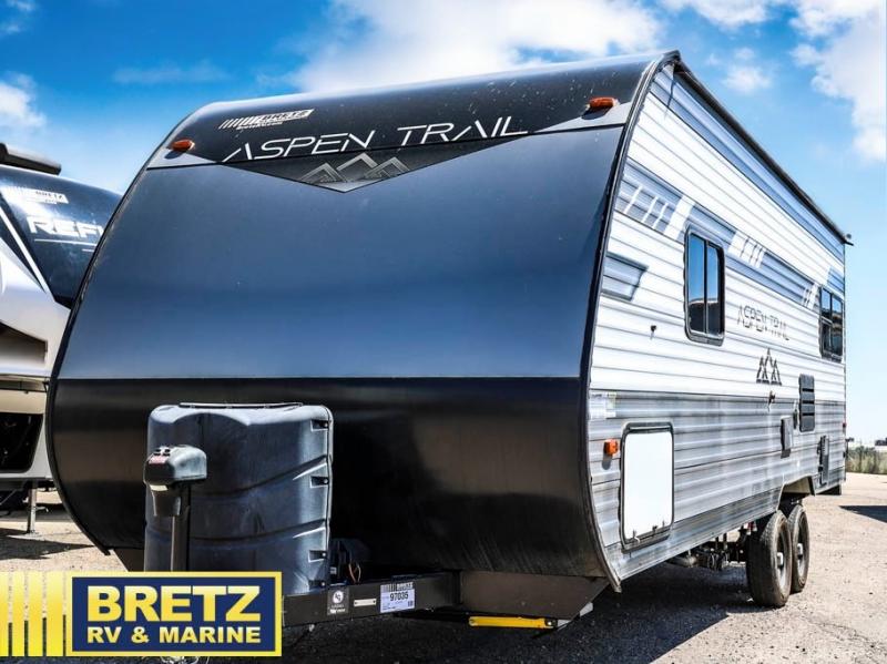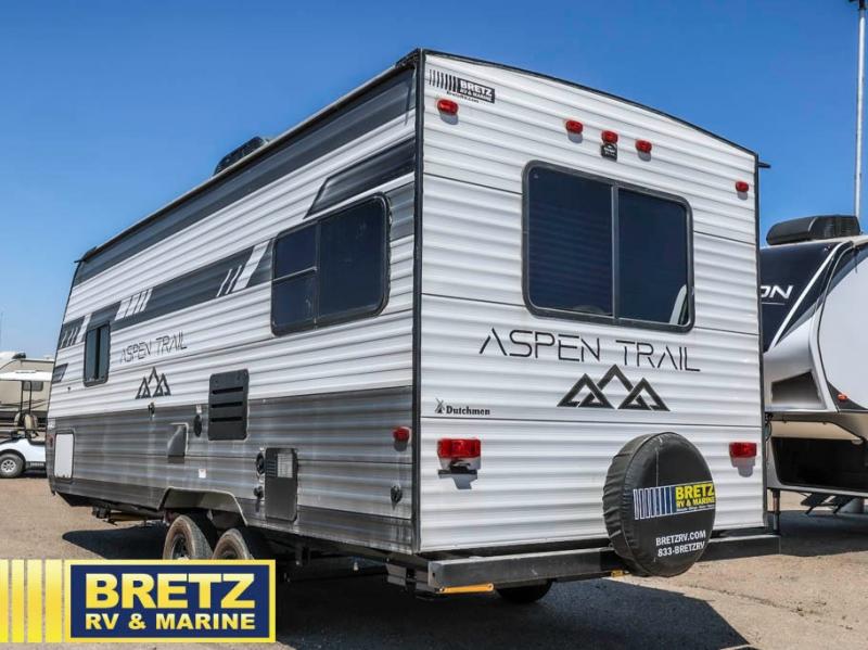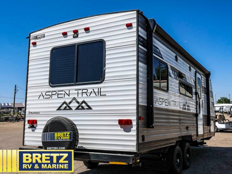 You will find more standard features and more value in each one of these Dutchmen RV Aspen Trail travel trailers! The aerodynamic front profile not only makes them easier to tow, but also more fuel efficient. Experience all of the power with power stabilizers, a power awning, and a power tongue jack for easy setting up and breaking down. The fully enclosed underbelly provides an extra layer of protection for your unit's vitals so you can camp further into the year. With aluminum steps, you will have a solid platform of stability as you enter and exit, plus they are easy to expand or store away. The backup camera prep offers peace of mind as you navigate your unit and the upgraded Beauflor lino throughout will be easy to clean so you don't have to worry about mud getting tracked inside. Come find the one that best suits your needs today!
