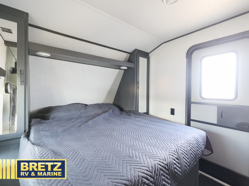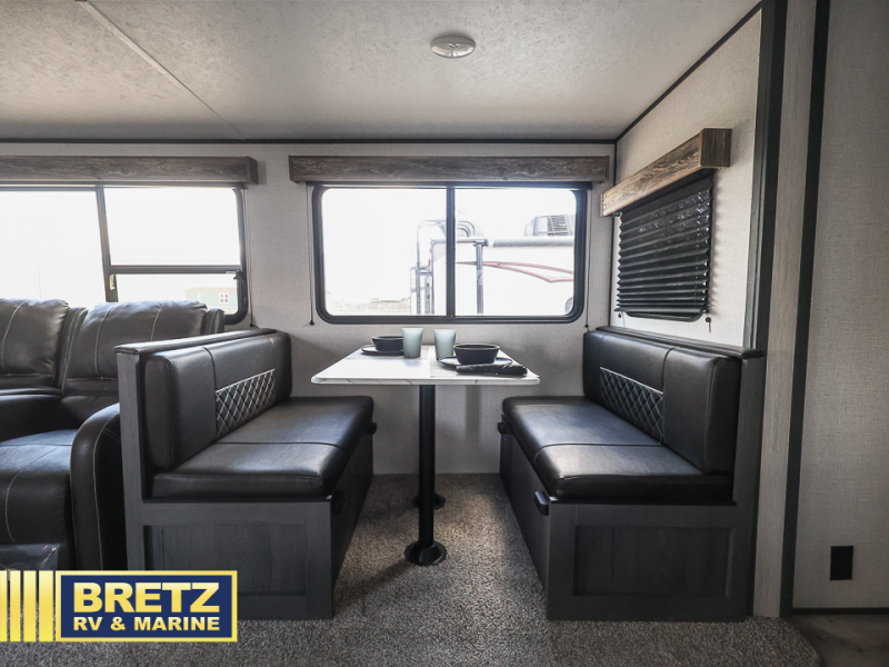 Pack up your gear and head out on your greatest camping adventure with this Aspen Trail travel trailer! You will love everything it has to offer, like the two entry doors that promote a smooth flow of traffic, the recliner chairs, and the sofa with end tables on either side. The booth dinette is the perfect place for you to enjoy your meals, play games, and even transform into an extra sleeping space. The front private bedroom welcomes you with a queen-size Everdream mattress to enjoy a good night's rest and even has a wardrobe for you to keep your hang-up clothes neat and tidy!