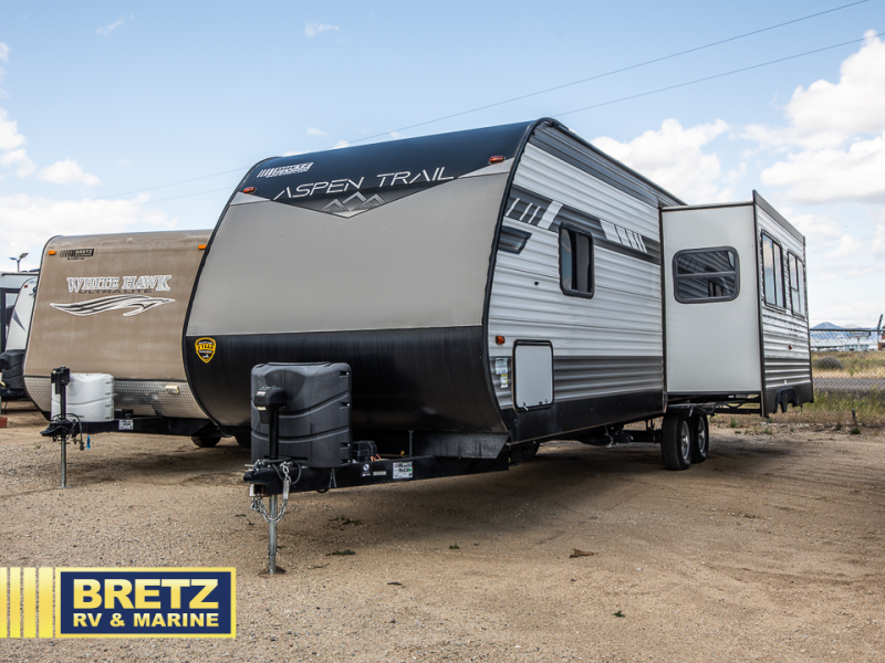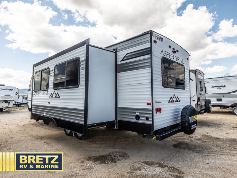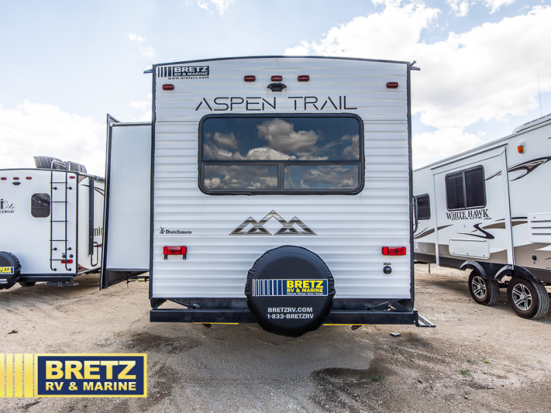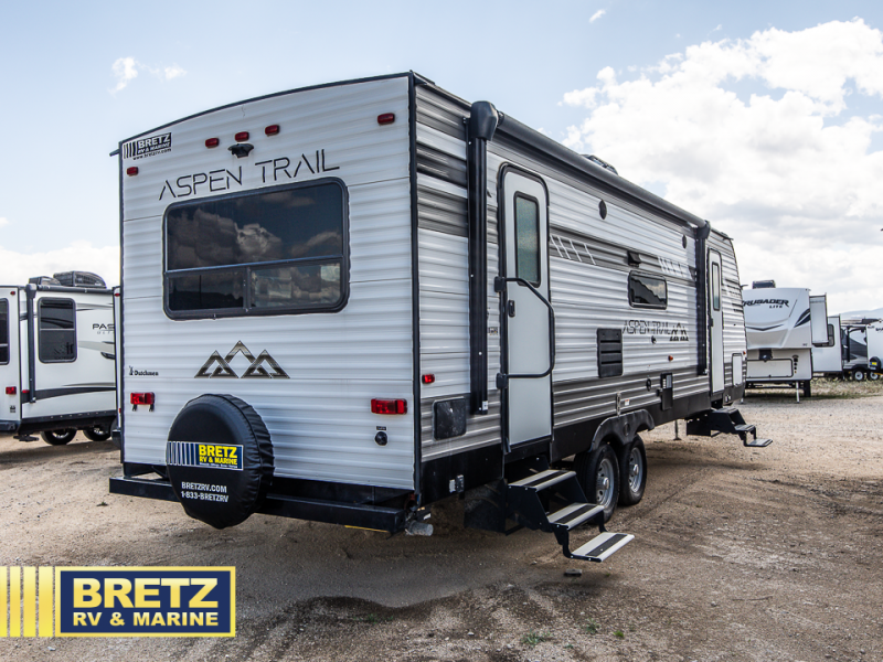 You will find more standard features and more value in each one of these Dutchmen RV Aspen Trail travel trailers! The aerodynamic front profile not only makes them easier to tow, but also more fuel efficient. Experience all of the power with power stabilizers, a power awning, and a power tongue jack for easy setting up and breaking down. The fully enclosed underbelly provides an extra layer of protection for your unit's vitals so you can camp further into the year. With aluminum steps, you will have a solid platform of stability as you enter and exit, plus they are easy to expand or store away. The backup camera prep offers peace of mind as you navigate your unit and the upgraded Beauflor lino throughout will be easy to clean so you don't have to worry about mud getting tracked inside. Come find the one that best suits your needs today!