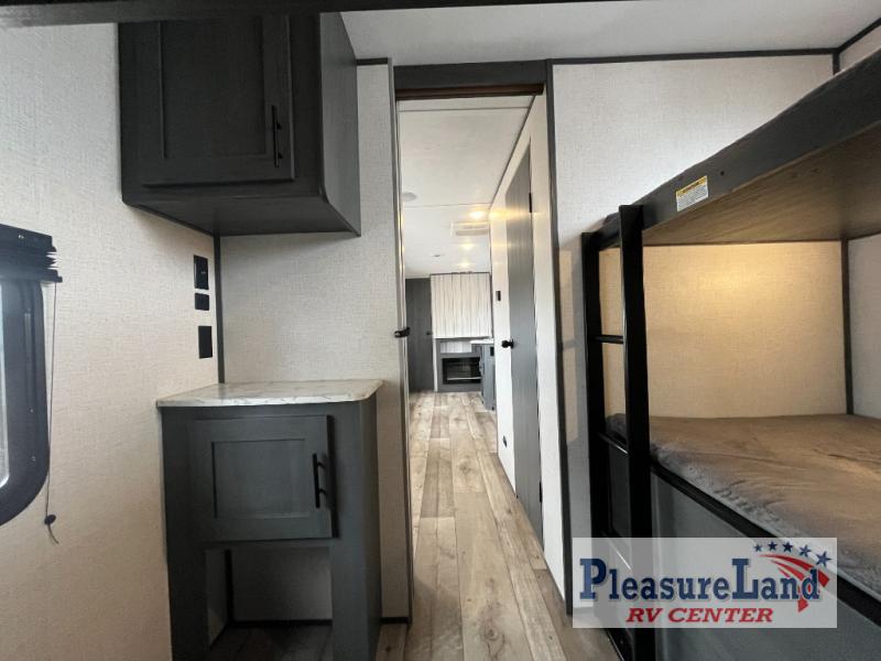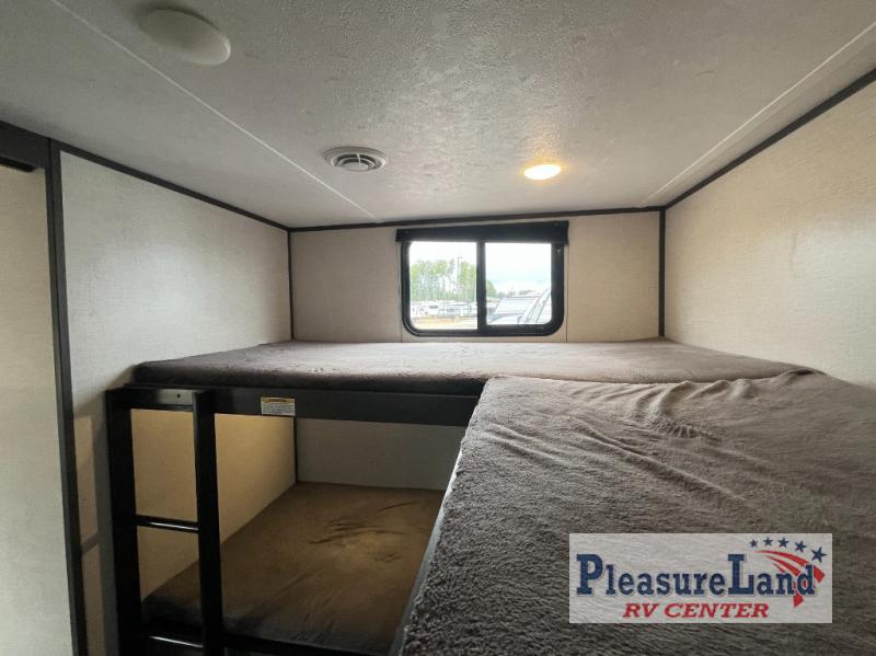 Invite your best friends to join you and your family on your next camping trip in this Colorado travel trailer! You will be able to offer them a private bunkhouse with triple bunks and seating that doubles as sleeping space and/or the living room furniture to sleep on. Your oasis will be in the front which includes your own residential queen bed and plenty of storage for your clothes and things. The central living area offers seating, dining and cooking amenities, plus a full bathroom which is super convenient, and you can make several meals using the outside kitchen while others relax under the 16' power awning with LED light for nighttime hangouts.