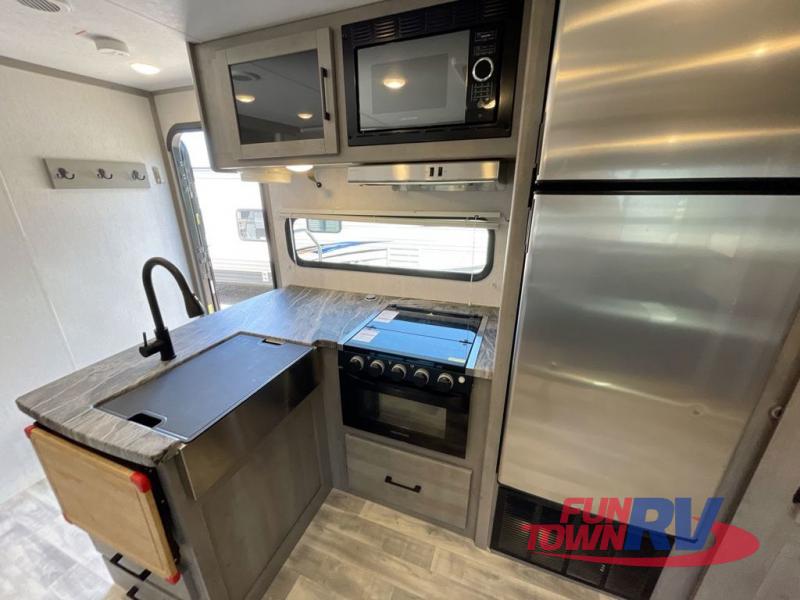 Each Kodiak Ultra-Lite travel trailer by Dutchmen includes a laminated crown roof, aluminum framing, and bear cage construction for a lightweight, yet durable RV. The HyperDeck flooring features fiberglass reinforced polypropylene, a higher density foam core, and a steel powder coated main frame. Head indoors to find seamless countertops, night shades throughout, and USB ports for your electronics. These travel trailers come with a power tongue jack and power stabilizer jacks for easy set-up, and easy lube axles to ensure smooth towing. Since the Kodiak Ultra-Lite is prepped for WiFi 4G LTE you can choose to get some work done while you're away from home, and you might even want to add the 32" LED TV available on some models!