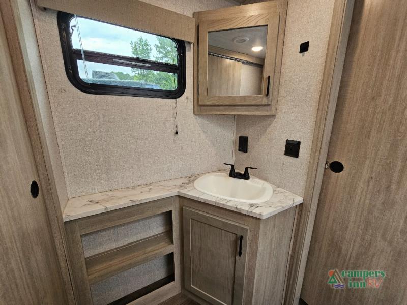 This well-maintained travel trailer is perfect for couples or solo travelers seeking residential-style comfort on the road. With a spacious rear kitchen, walk-through bath, and dual entry doors, the Alta 2350KRK offers functionality, flexibility, and comfort in a lightweight towable package.