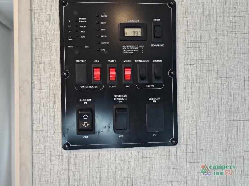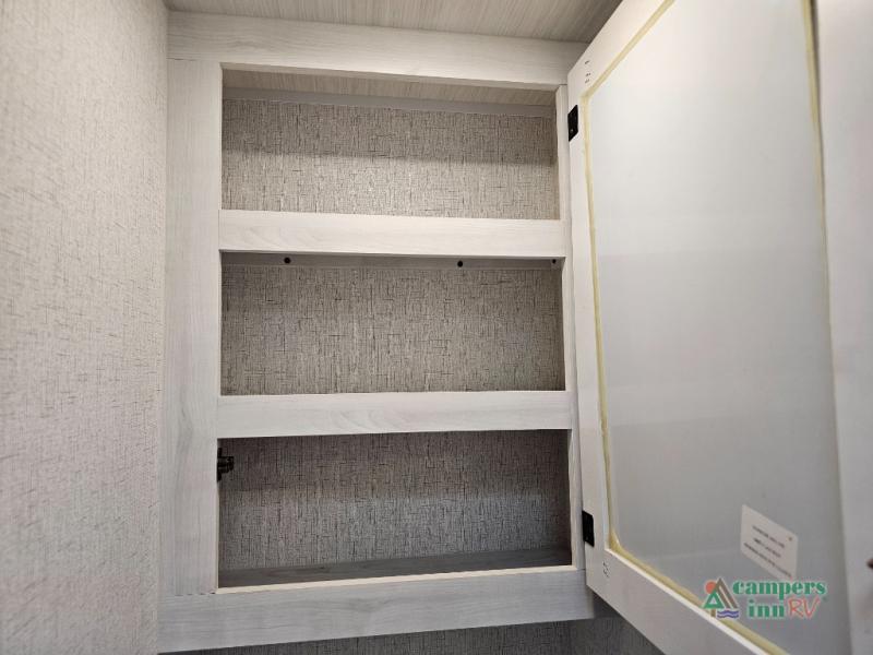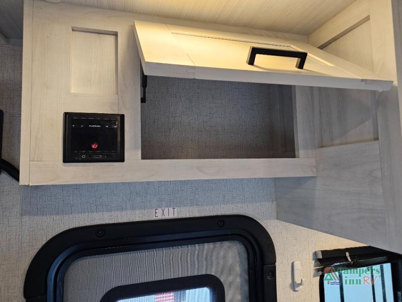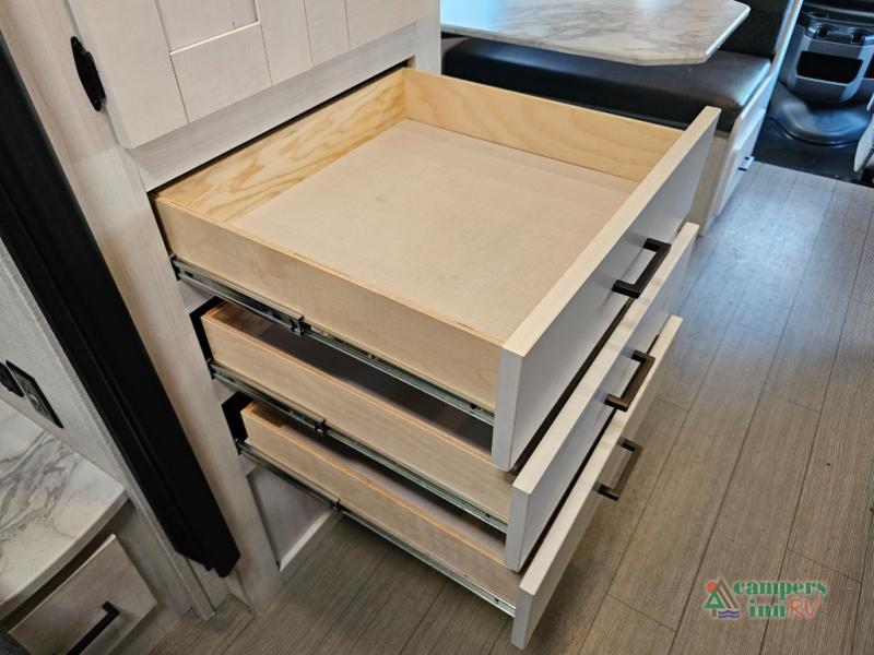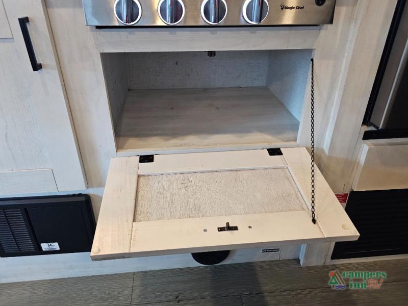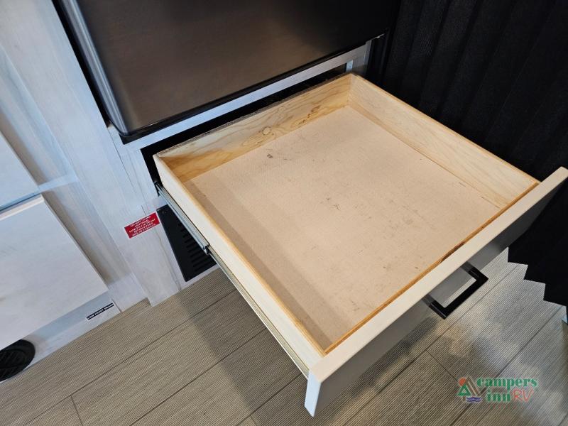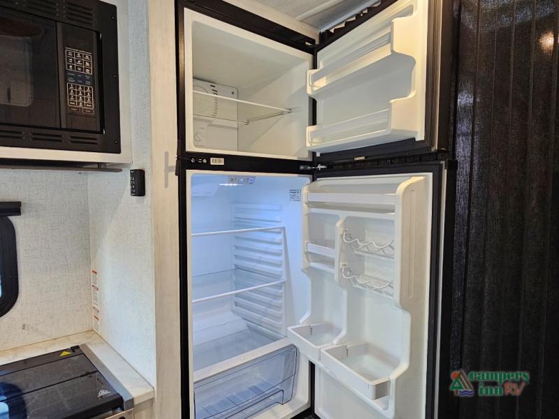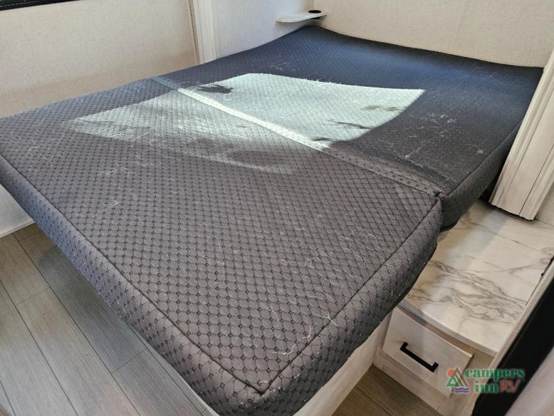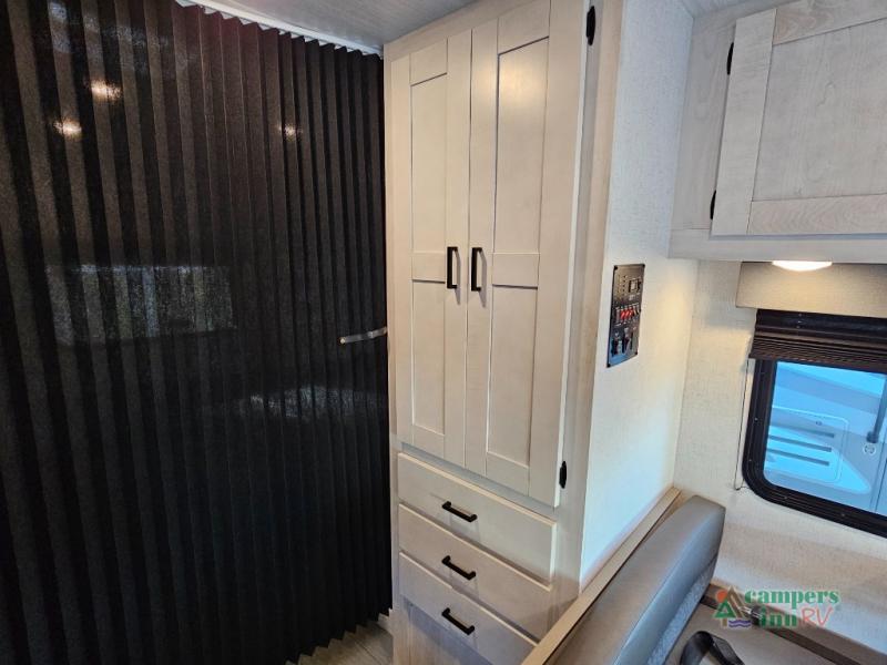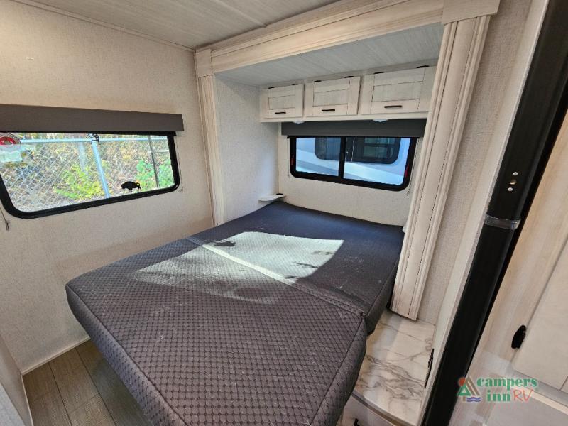 Rear queen bed slide maximizes living space while offering a cozy retreat