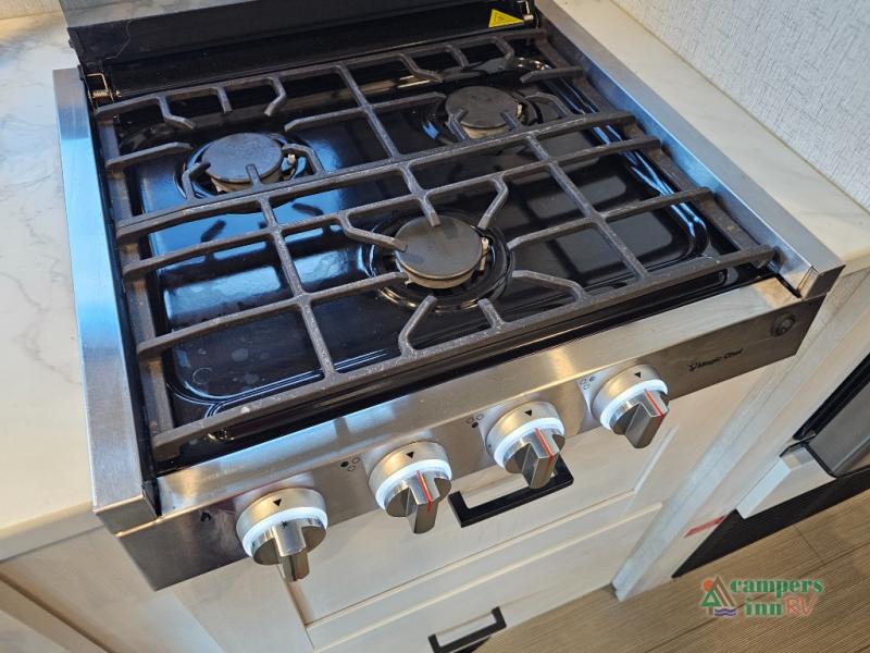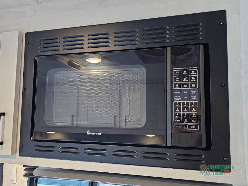Fully equipped galley with a convection microwave, cooktop, and round sink