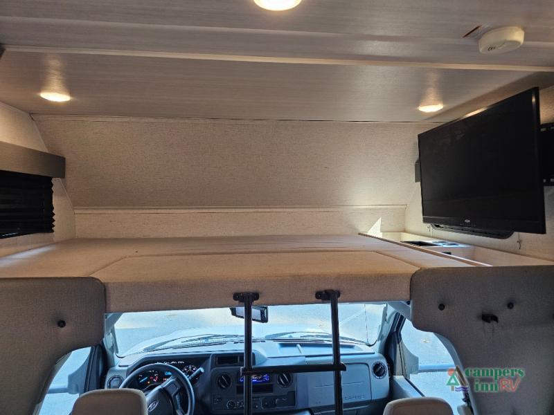 60" x 80" bunk over cab with plenty of room for guests or extra storage